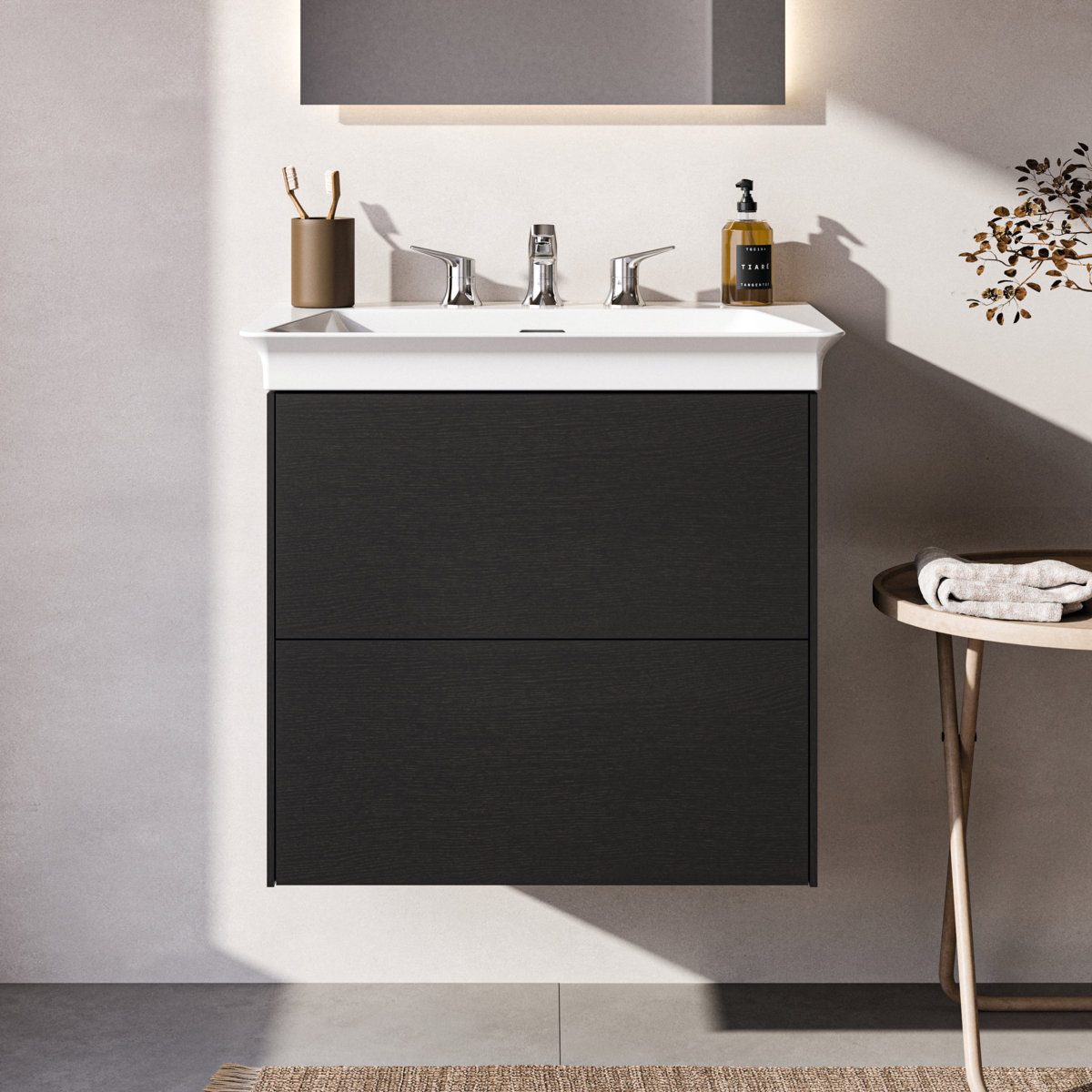 CONCA Тумба без столешницы 60х44 см, комбинированная система для удобного использования (открытие "Push to open" + закрытие "Soft close"). Внутренняя отделка ящиков цвета антрацит. 2 ящика. олнительно). Для монтажа с раковинами La Dolce Vita Symmetrical Vanity 66 см E264401; E270001; E267501 или Extra 60 см T388901; T389101; T389001 или Strada II Vanity 64 см T299101; T363301 или Connect Air Vanity 64 см E028901 или Tesi Vanity 62,5 см T351001 или I.Life A Vanity 64 см T461901 или Eurovit Vanity 61 см E066801