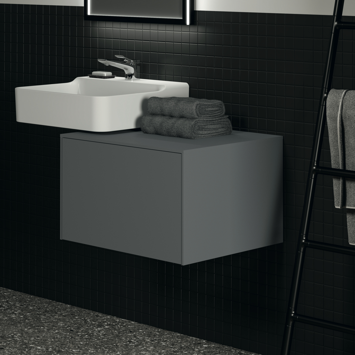 Модуль под раковину Conca 60х50,5х37 см, без выреза в столешнице, антрацит матовый, система push-to-open