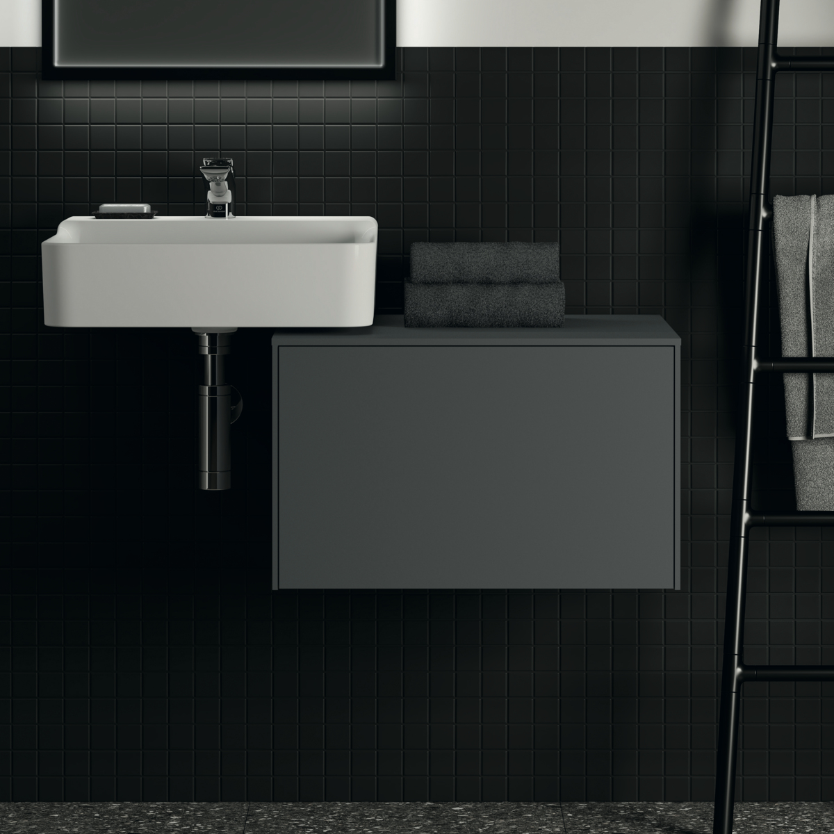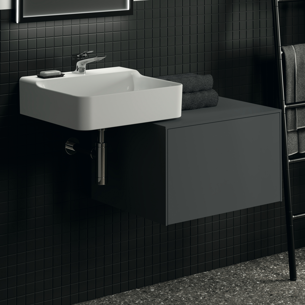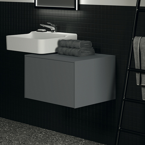 CONCA Тумба 60 см для раковины, без выреза в столешнице. Комбинированная система для удобного использования (открытие "Push to open" + закрытие "Soft close"). Внутренняя отделка ящиков цвета антрацит. 1 ящик. Для монтажа с раковинами Conca 40/50 см (с шлифованной нижней поверхностью) или Conca vessel 45 см или Extra 45/50 см (с шлифованной нижней поверхностью) или Extra vessel 50 см или Ipalyss vessel 40/55/60 см или Linda-X 50/60 см (с шлифованной нижней поверхностью) или Linda-X vessel 45/55 см