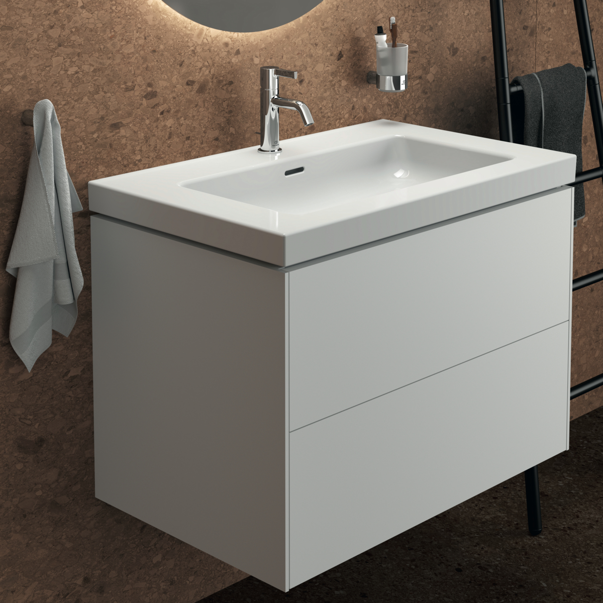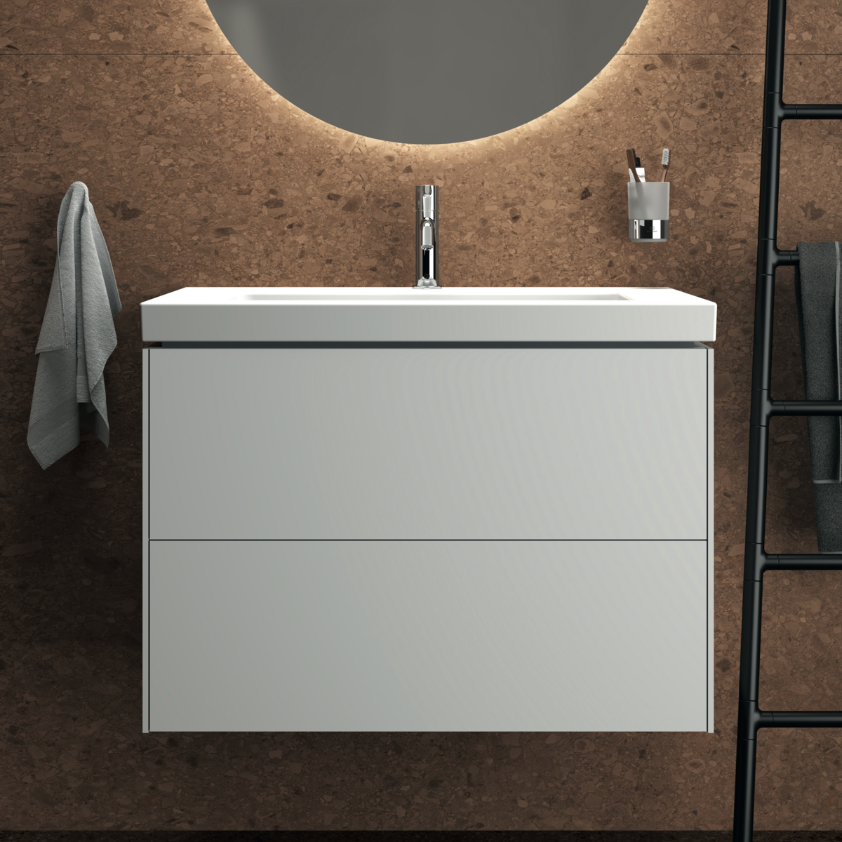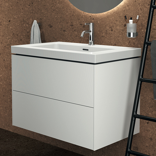 CONCA Тумба 80 см для раковины, без столешницы. Комбинированная система для удобного использования (открытие "Push to open" + закрытие "Soft close"). Внутренняя отделка ящиков цвета антрацит. 2 внешних ящика. Для монтажа с раковиной Extra Vanity 81 см или Calla Vanity 86,5 см или I.Life B Vanity 81 см