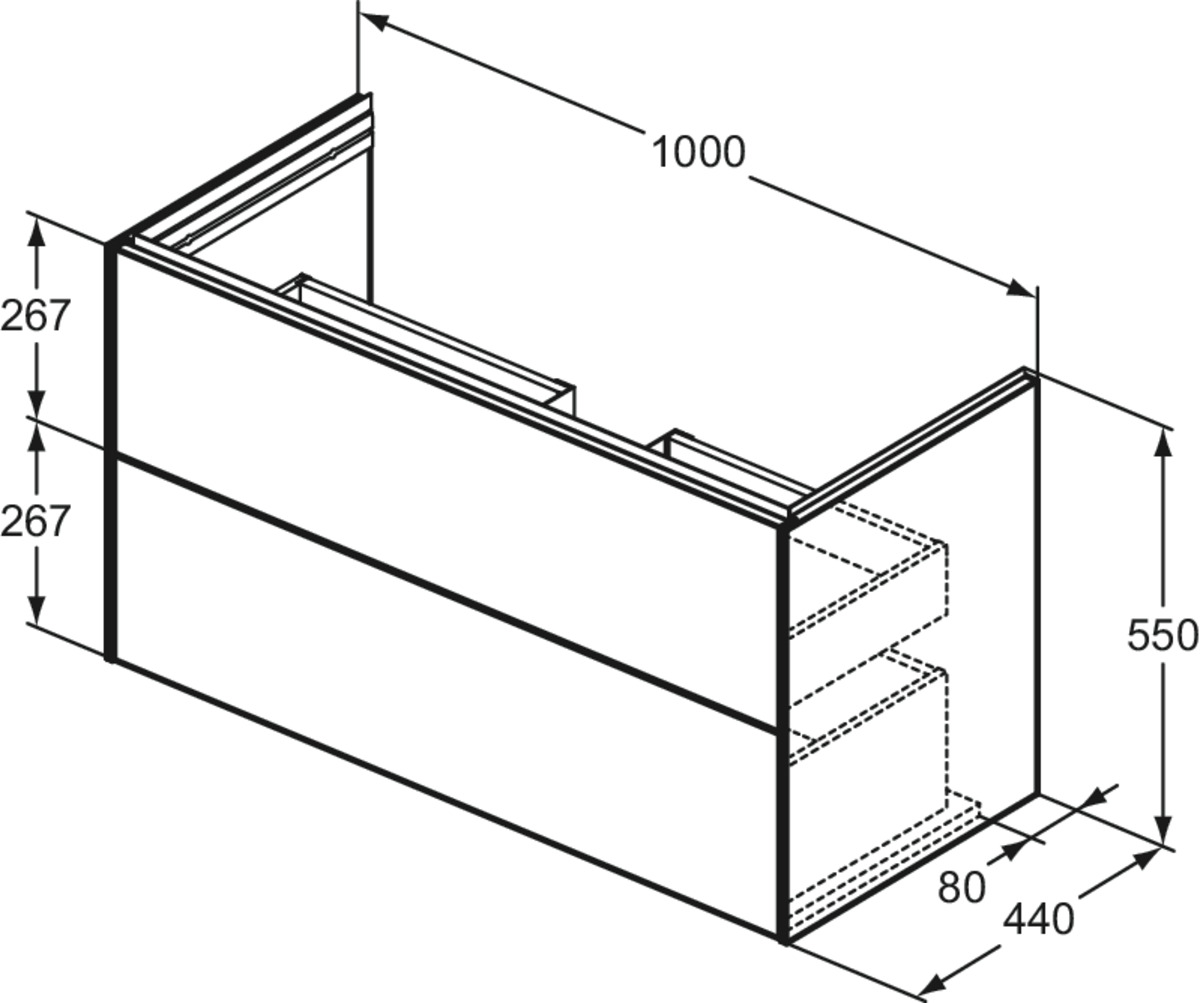 CONCA Тумба без столешницы 100х44 см, комбинированная система для удобного использования (открытие "Push to open" + закрытие "Soft close"). Внутренняя отделка ящиков цвета антрацит. 2 ящика. Для монтажа с раковинами Extra 100 см T390501; T390601; T390801; T390701 или Strada II Vanity 104 см T300401; T363501 или Connect Air Vanity 104 см E027401 или I.Life A Vanity 104 см T462101