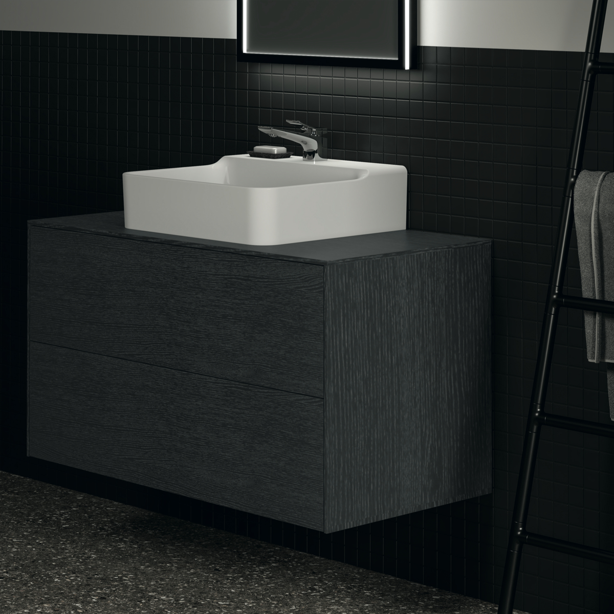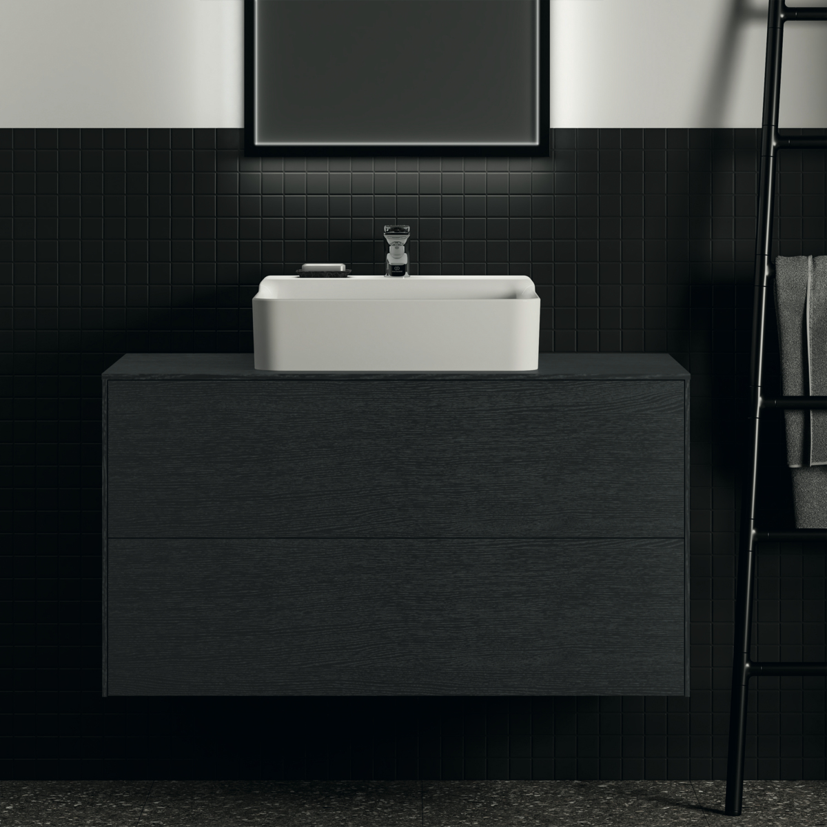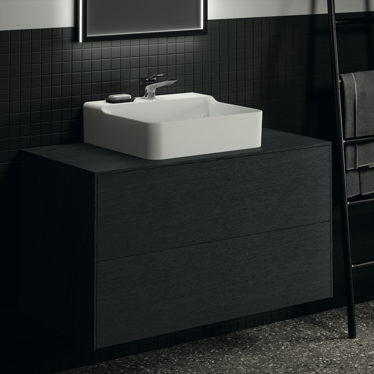 CONCA Тумба 100 см для раковины, центральный вырез в столешнице. Комбинированная система для удобного использования (открытие "Push to open" + закрытие "Soft close"). Внутренняя отделка ящиков цвета антрацит. 2 ящика. Для монтажа с раковинами Conca 40/50/60/80 см (с шлифованной нижней поверхностью) или Conca vessel 45/60 см или Extra 45/50/60/70/80 см (с шлифованной нижней поверхностью) или Extra vessel 50/60 см или Ipalyss vessel 40/55/60/65/80 см или Linda-X 50/60/75 см (с шлифованной нижней поверхностью)