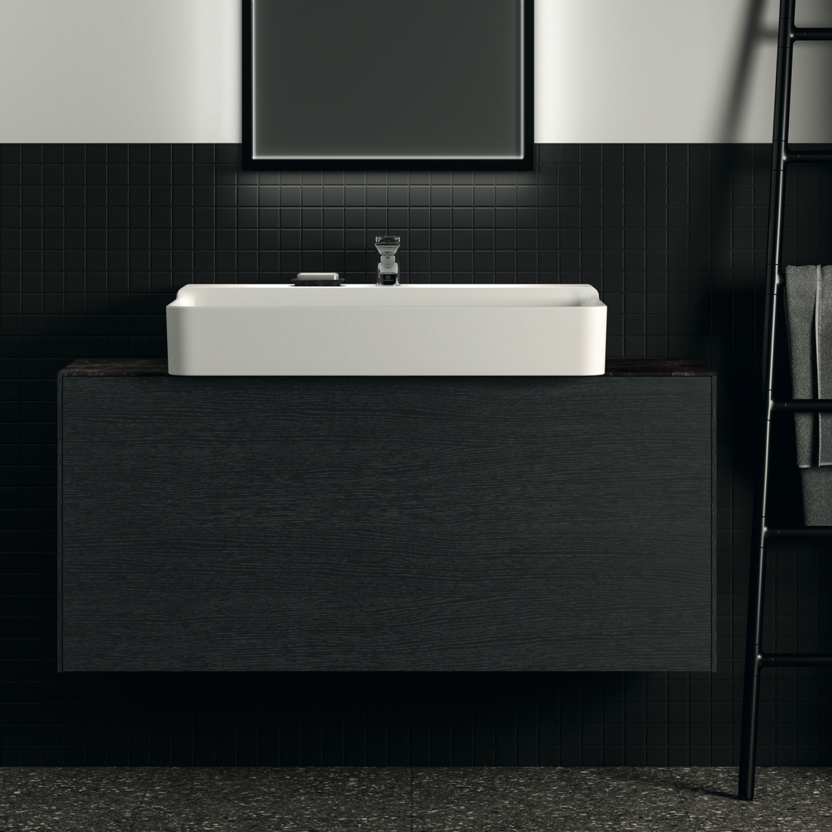 CONCA Тумба 120 см для раковины, узкая проекция 37 см, без столешницы. Комбинированная система для удобного использования (открытие "Push to open" + закрытие "Soft close"). Внутренняя отделка ящиков цвета антрацит. 1 внешний и 1 внутренний ящик. Для монтажа со столешницей из литьевого мрамора (без выреза / вырез под заказ) 120 см T4347. Рекомендуется сифон Space Saving EE23033967 (заказывается дополнительно)