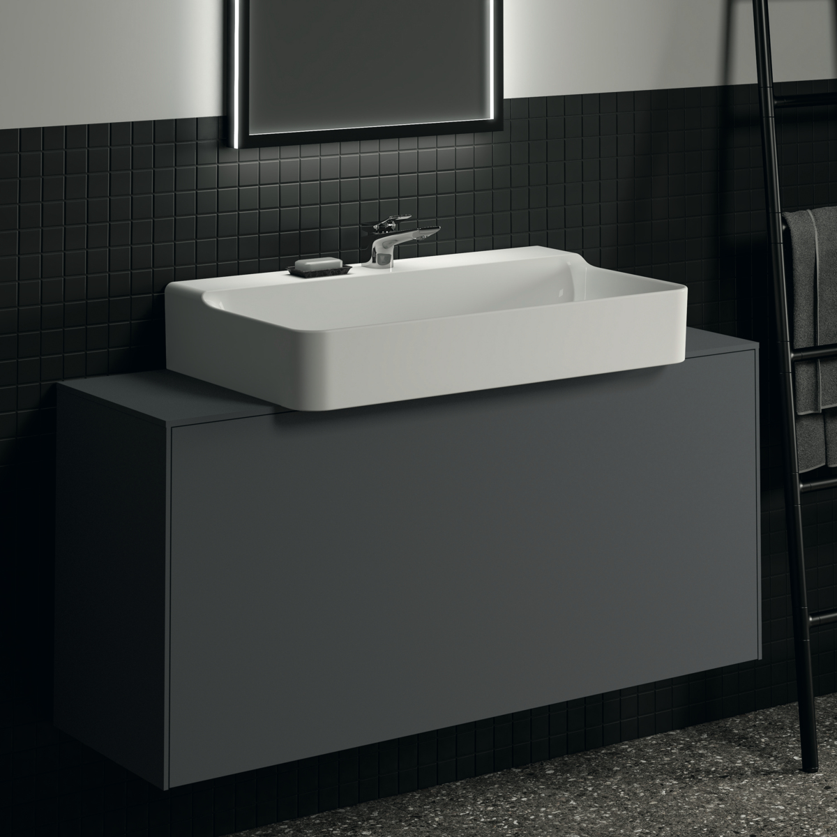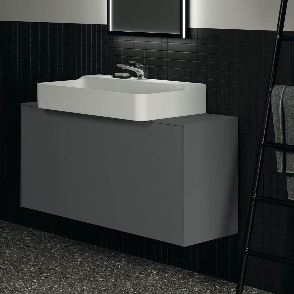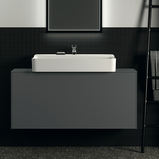 CONCA Тумба 120 см для раковины, узкая проекция 37 см, центральный вырез в столешнице. Комбинированная система для удобного использования (открытие "Push to open" + закрытие "Soft close"). Внутренняя отделка ящиков цвета антрацит. 1 внешний и 1 внутренний ящик. Рекомендуется сифон Space Saving EE23033967 (заказывается дополнительно). Для монтажа с раковинами Conca 40/50/60/80/100 см (с шлифованной нижней поверхностью) или Conca vessel 45/60 см или Extra 45/50/60/70/80/100 см (с шлифованной нижней поверхностью) или Extra vessel 50/60 см или Ipalyss vessel 40/55/60/65/80 см или Linda-X 50/60/75 см (с шлифованной нижней поверхностью) или Linda-X vessel 45/55 см