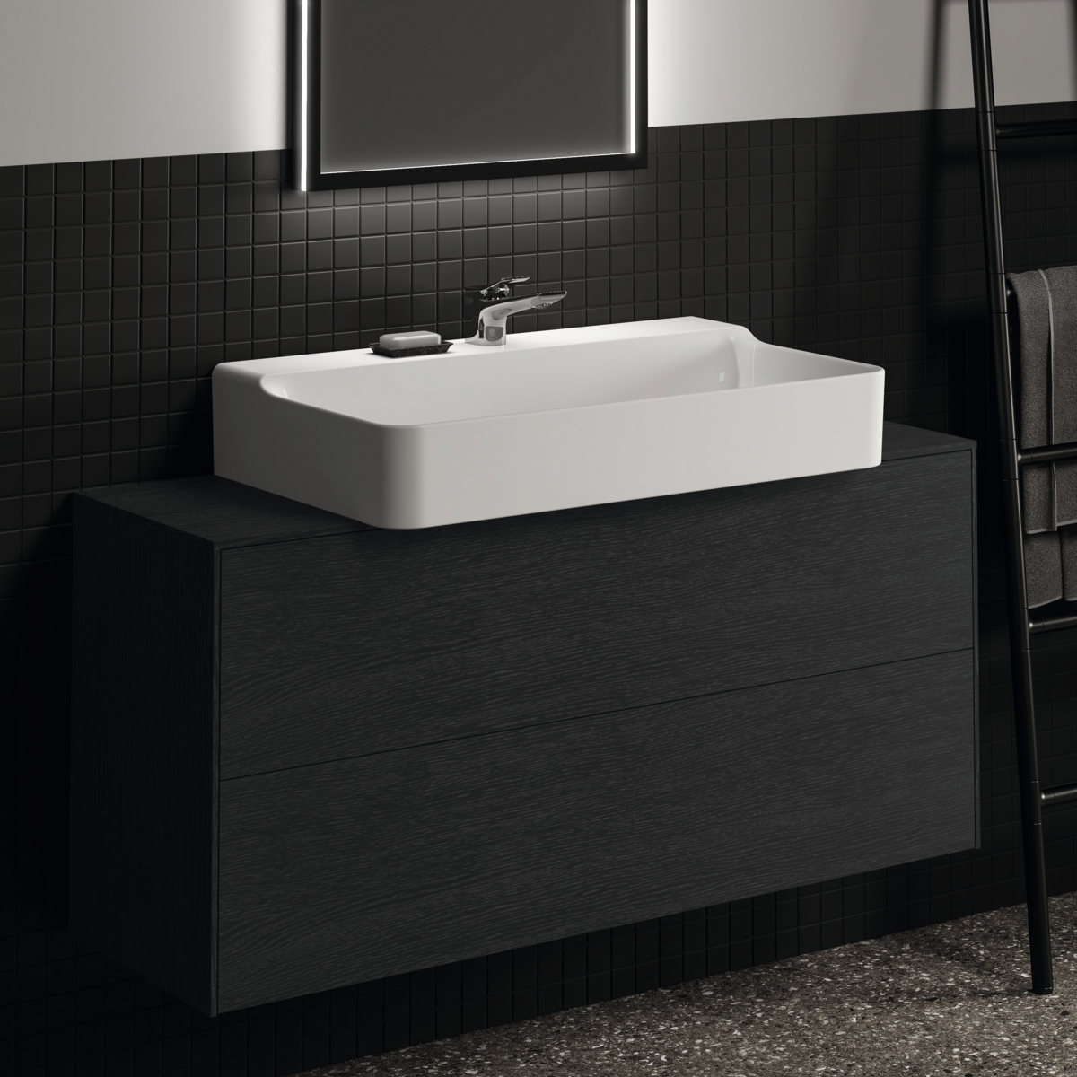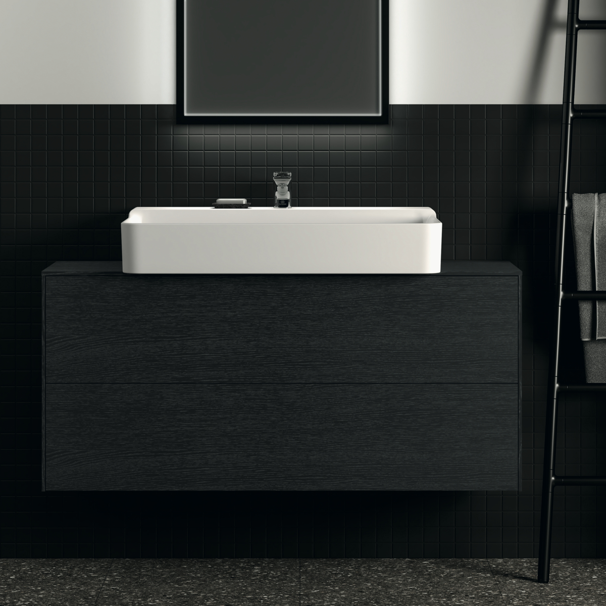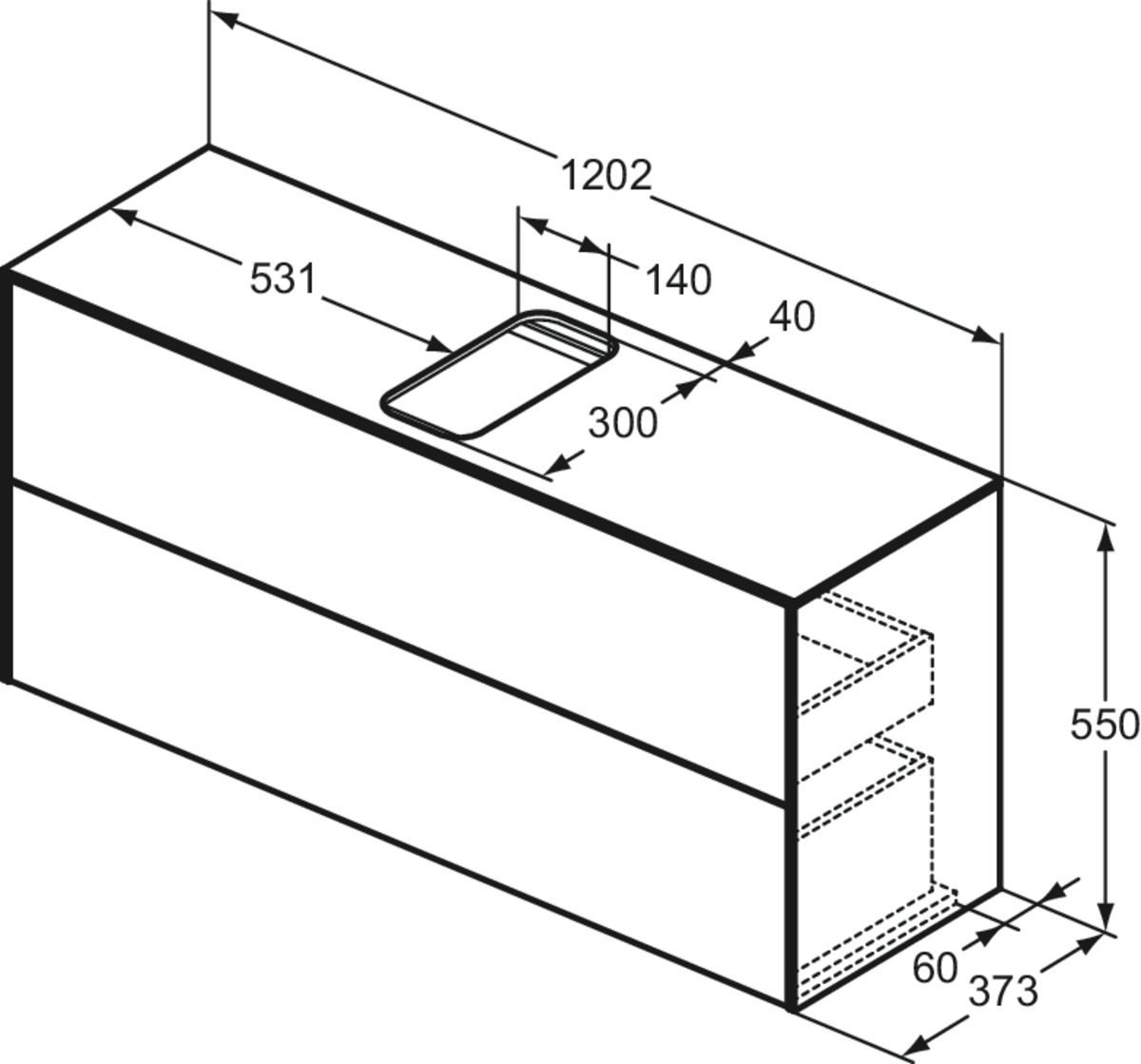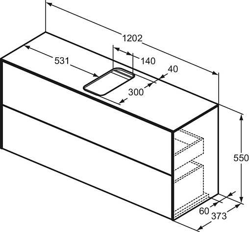 CONCA Тумба 120 см для раковины, узкая проекция 37 см, центральный вырез в столешнице. Комбинированная система для удобного использования (открытие "Push to open" + закрытие "Soft close"). Внутренняя отделка ящиков цвета антрацит. 2 внешних ящика. Для монтажа с раковинами Conca 40/50/60/80/100 см (с шлифованной нижней поверхностью) или Conca vessel 45/60 см или Extra 45/50/60/70/80/100 см (с шлифованной нижней поверхностью) или Extra vessel 50/60 см или Ipalyss vessel 40/55/60/65/80 см или Linda-X 50/60/75 см (с шлифованной нижней поверхностью)