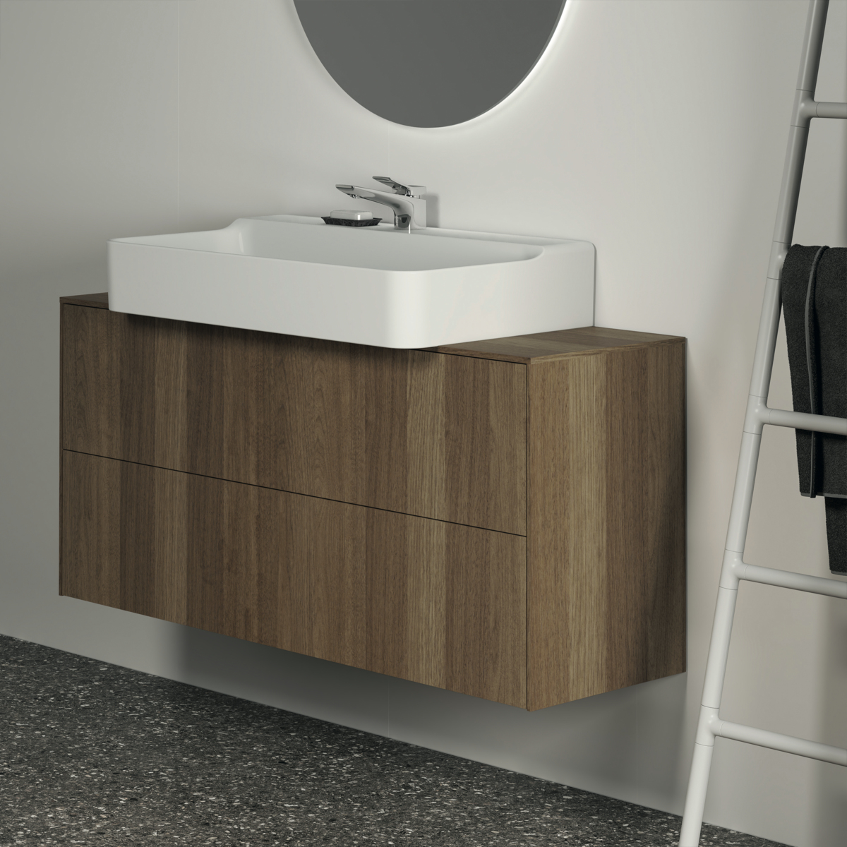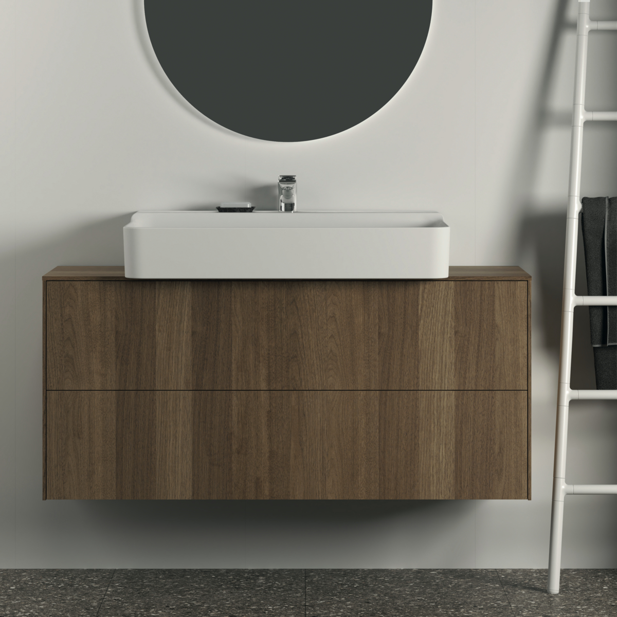 CONCA Тумба 120 см для раковины, узкая проекция 37 см, центральный вырез в столешнице. Комбинированная система для удобного использования (открытие "Push to open" + закрытие "Soft close"). Внутренняя отделка ящиков цвета антрацит. 2 внешних ящика. Для монтажа с раковинами Conca 40/50/60/80/100 см (с шлифованной нижней поверхностью) или Conca vessel 45/60 см или Extra 45/50/60/70/80/100 см (с шлифованной нижней поверхностью) или Extra vessel 50/60 см или Ipalyss vessel 40/55/60/65/80 см или Linda-X 50/60/75 см (с шлифованной нижней поверхностью)