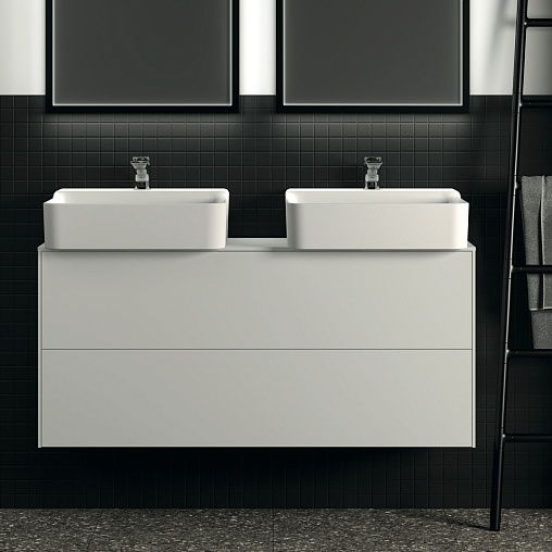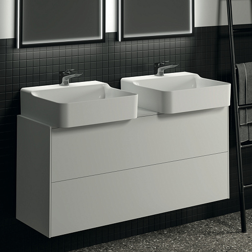 Модуль под раковину Conca 120х37,3х55 см, 2 ящика, вырез в столешнице под заказ, белый матовый, система push-to-open