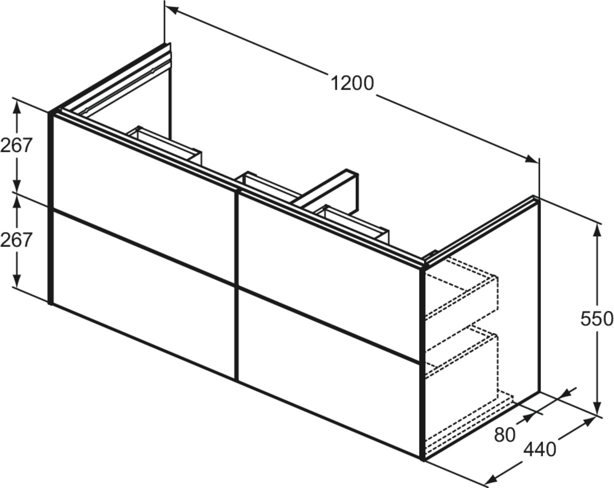 CONCA Тумба без столешницы 120х44 см, комбинированная система для удобного использования (открытие "Push to open" + закрытие "Soft close"). Внутренняя отделка ящиков цвета антрацит. 4 ящика. Для монтажа с раковинами Extra 120 см T3913, T3915, T3914 или Connect Air Vanity 124 см E0273 или Strada II Vanity 124 см T3005, T3636, или Eurovit Vanity 121,5 см E0534