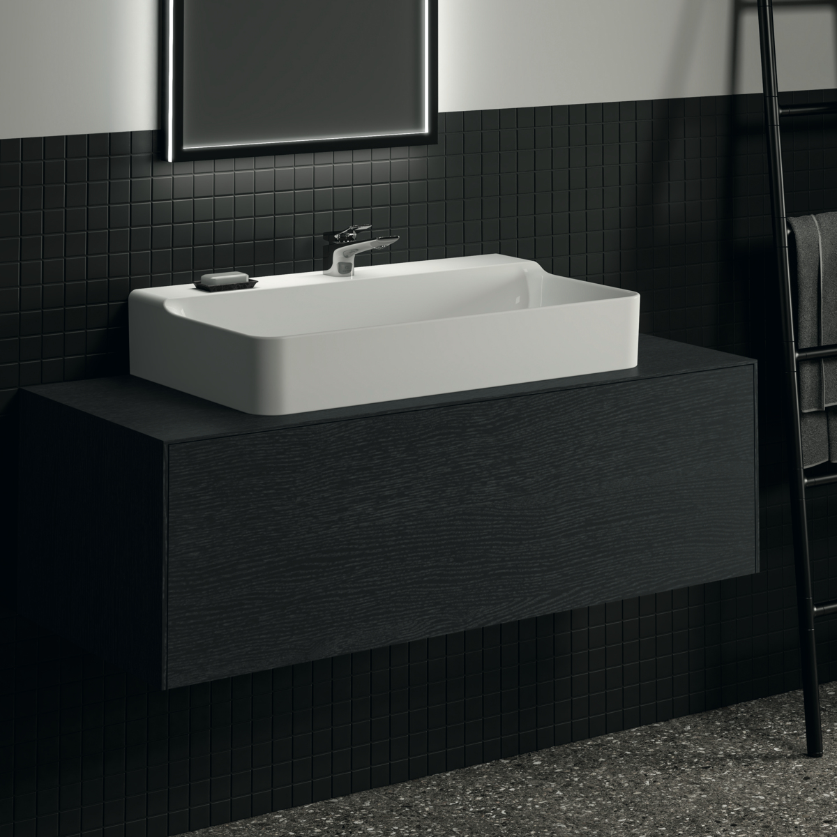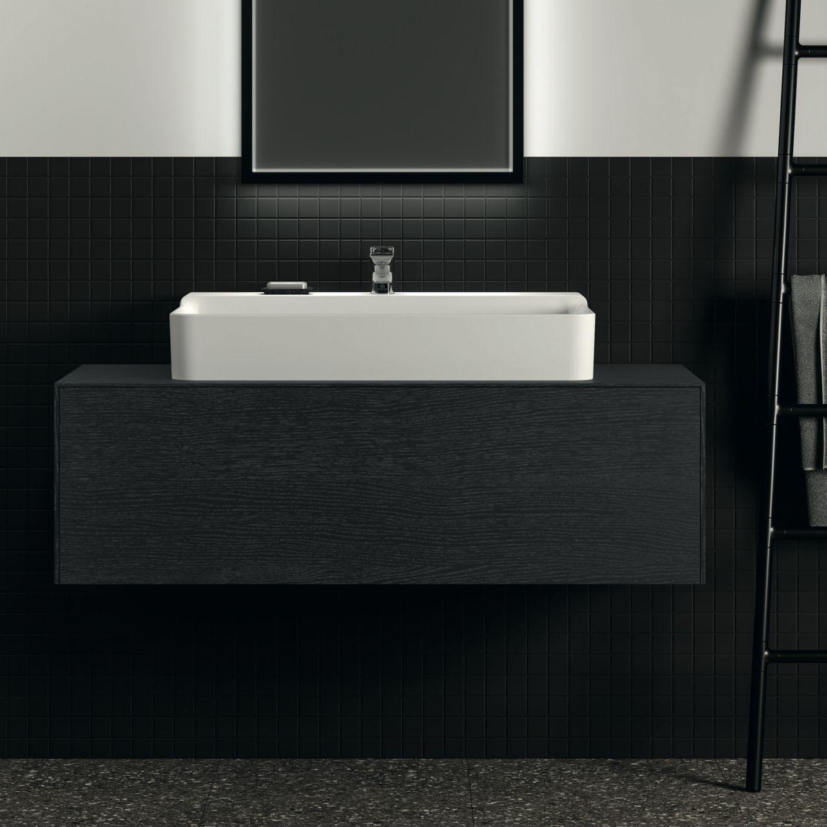 CONCA Тумба 120 см для раковины, центральный вырез в столешнице. Комбинированная система для удобного использования (открытие "Push to open" + закрытие "Soft close"). Внутренняя отделка ящиков цвета антрацит. 1 ящик. Рекомендуется сифон Space Saving EE23033967 (заказывается дополнительно). Для монтажа с раковинами Conca 40/50/60/80/100 см (с шлифованной нижней поверхностью) или Conca vessel 45/60 см или Extra 45/50/60/70/80/100 см (с шлифованной нижней поверхностью) или Extra vessel 50/60 см или Ipalyss vessel 40/55/60/65/80 см или Linda-X 50/60/75 см (с шлифованной нижней поверхностью)