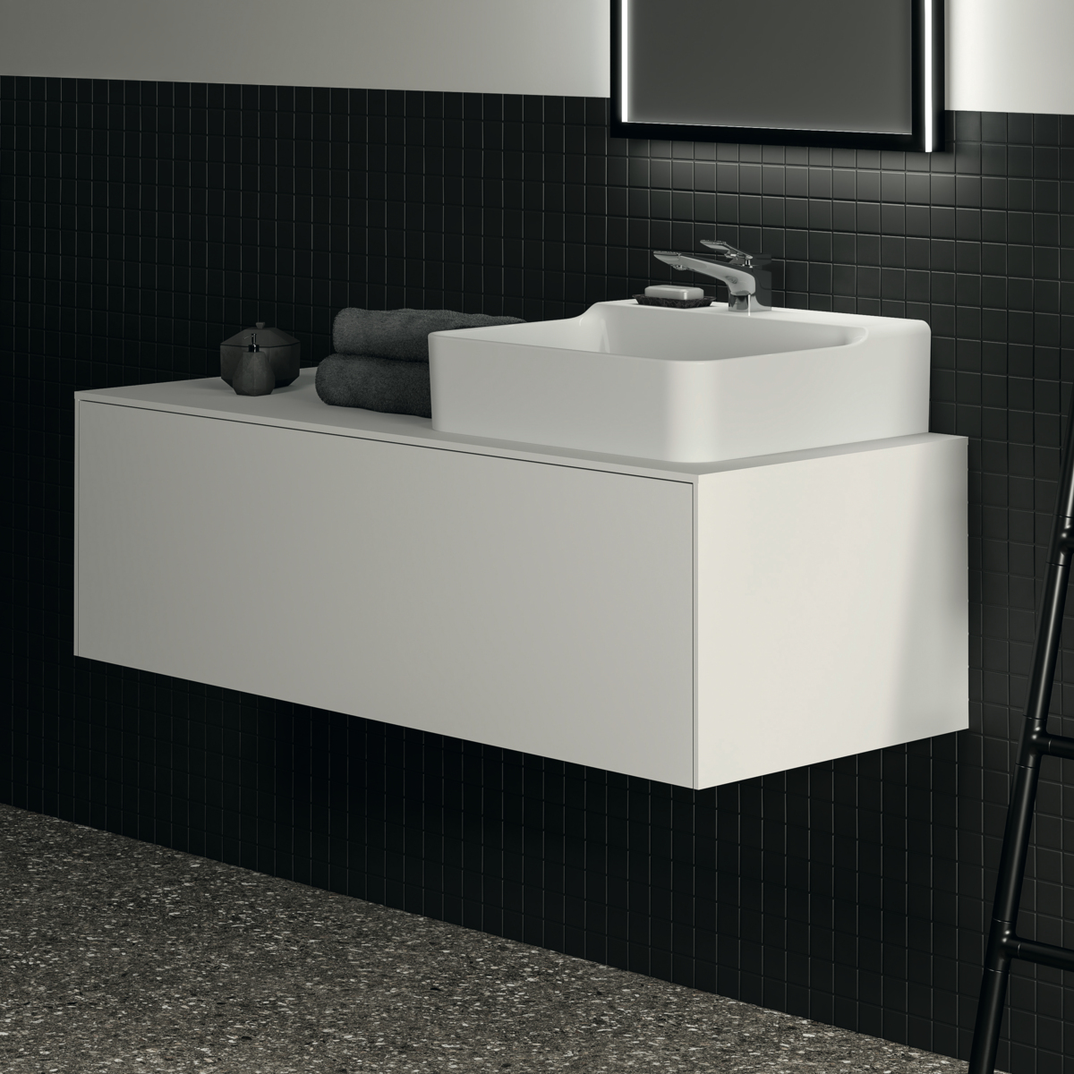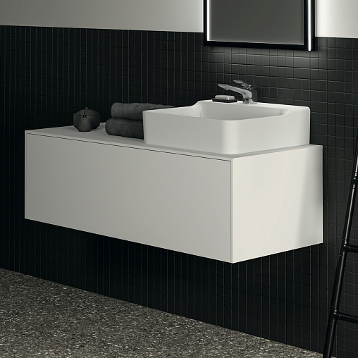 CONCA Тумба 120 см для раковины (вырез в столешнице под заказ). Комбинированная система для удобного использования (открытие "Push to open" + закрытие "Soft close"). Внутренняя отделка ящиков цвета антрацит. 1 ящик.