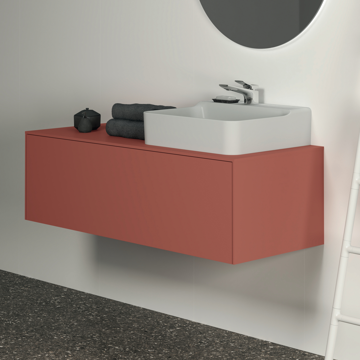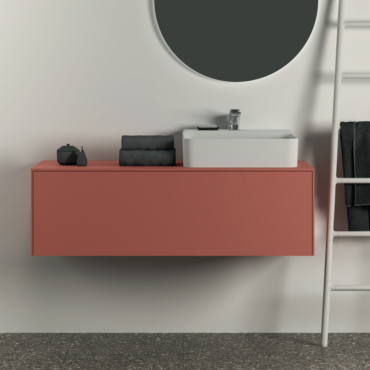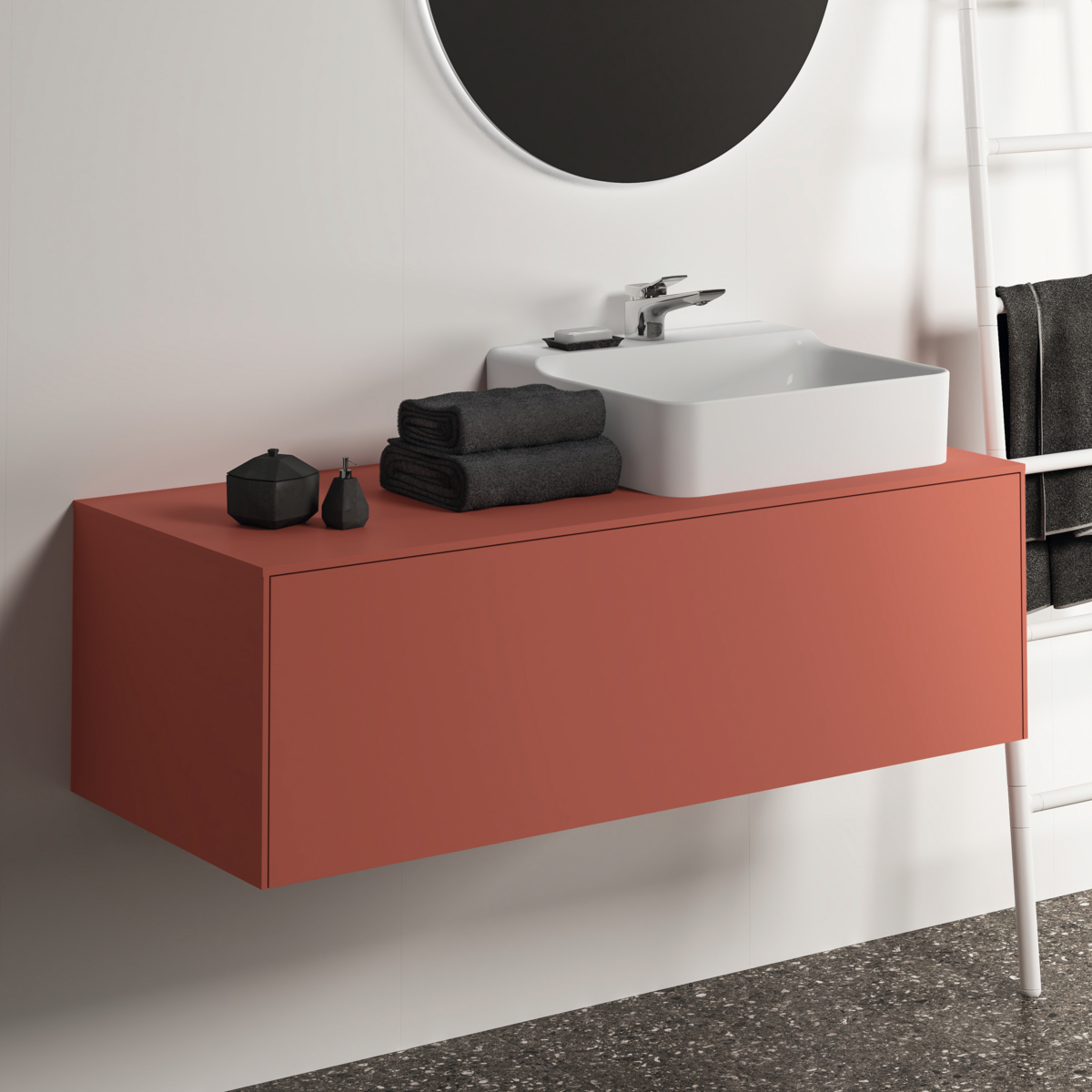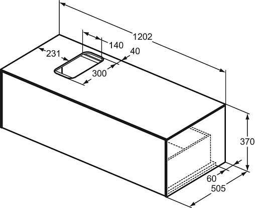 CONCA Тумба 120 см для раковины (вырез в столешнице под заказ). Комбинированная система для удобного использования (открытие "Push to open" + закрытие "Soft close"). Внутренняя отделка ящиков цвета антрацит. 1 ящик.