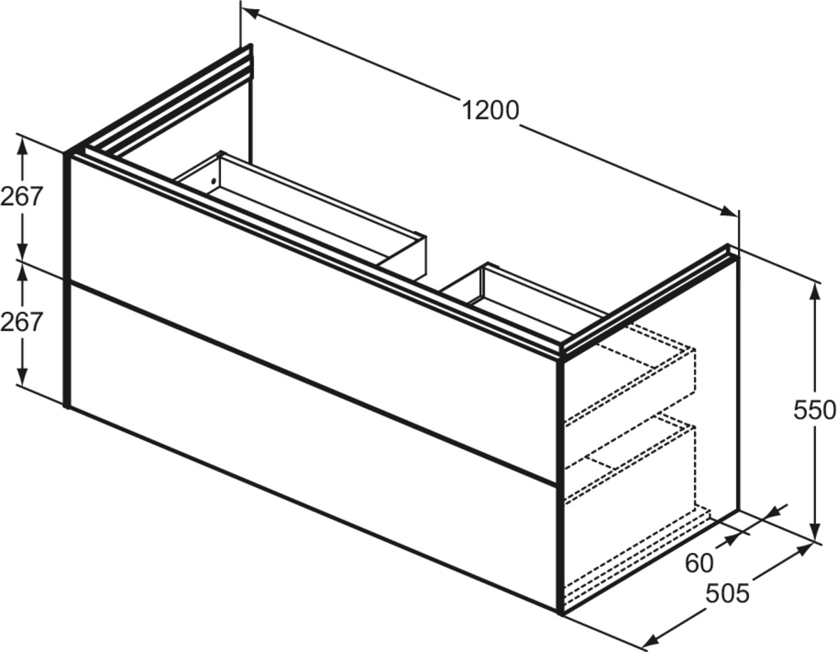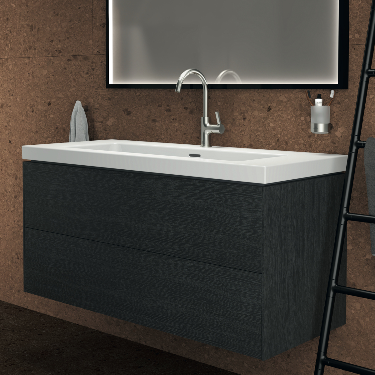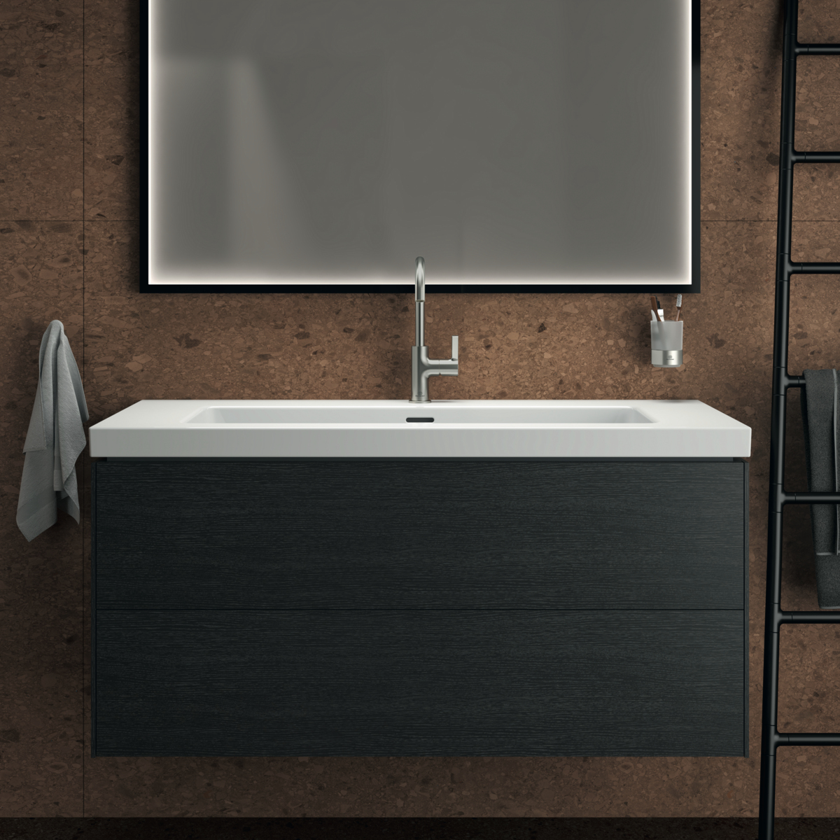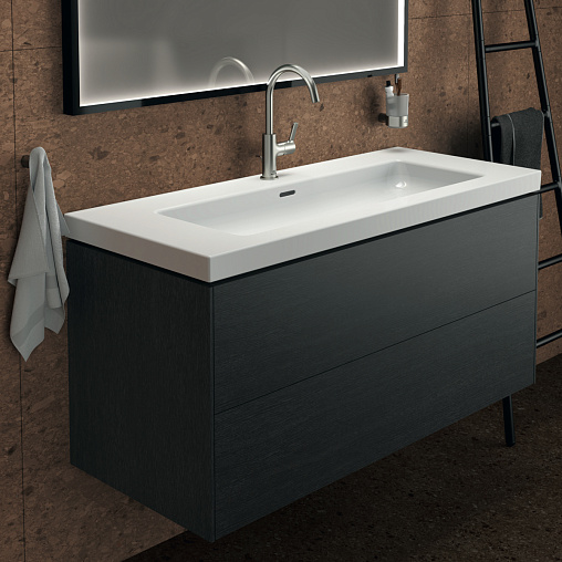 CONCA Тумба 120 см для раковины, без столешницы. Комбинированная система для удобного использования (открытие "Push to open" + закрытие "Soft close"). Внутренняя отделка ящиков цвета антрацит. 2 внешних ящика. Для монтажа с раковиной Extra Vanity 121 см или Solos Vanity 121,5 см