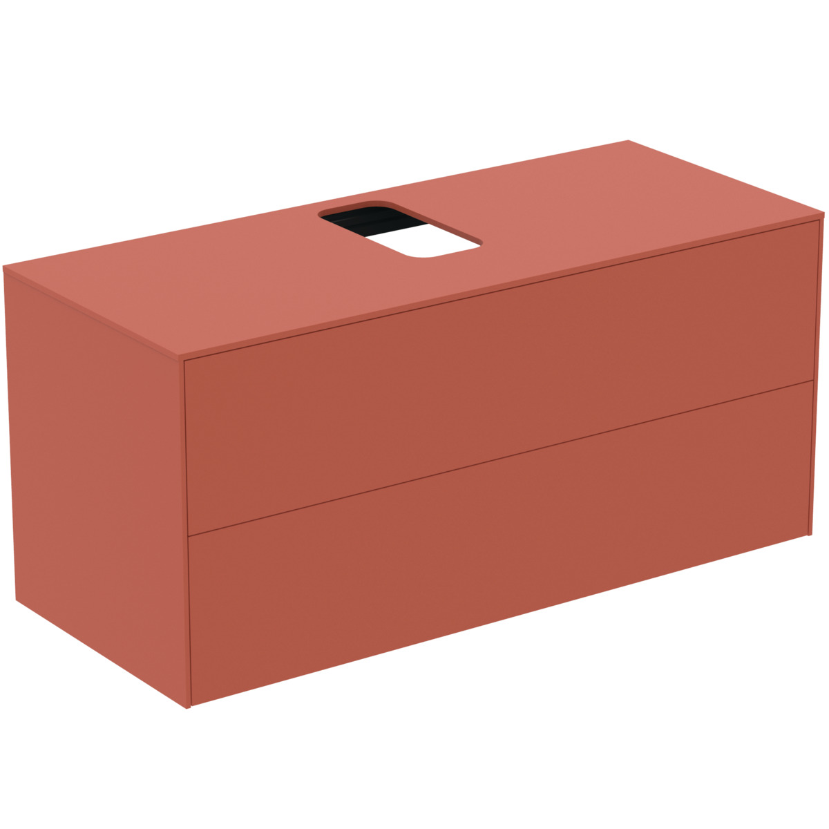 CONCA Тумба 120 см для раковины, центральный вырез в столешнице. Комбинированная система для удобного использования (открытие "Push to open" + закрытие "Soft close"). Внутренняя отделка ящиков цвета антрацит. 2 ящика. Для монтажа с раковинами Conca 40/50/60/80/100 см (с шлифованной нижней поверхностью) или Conca vessel 45/60 см или Extra 45/50/60/70/80/100 см (с шлифованной нижней поверхностью) или Extra vessel 50/60 см или Ipalyss vessel 40/55/60/65/80 см или Linda-X 50/60/75 см (с шлифованной нижней поверхностью)