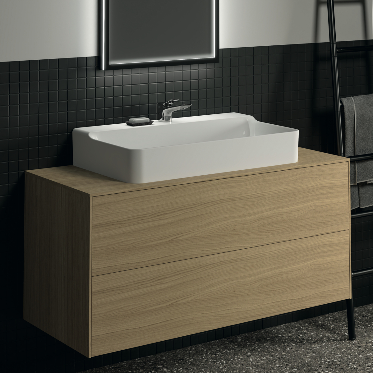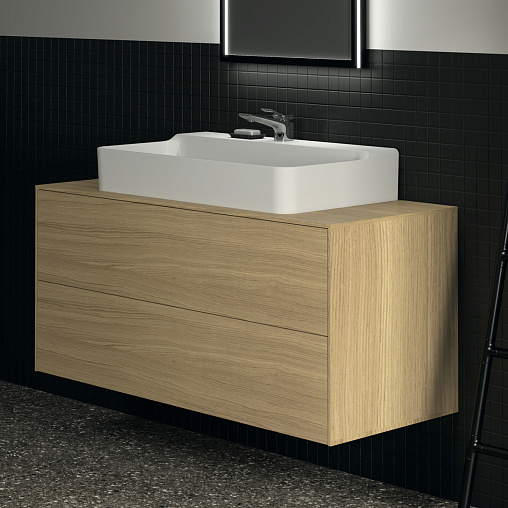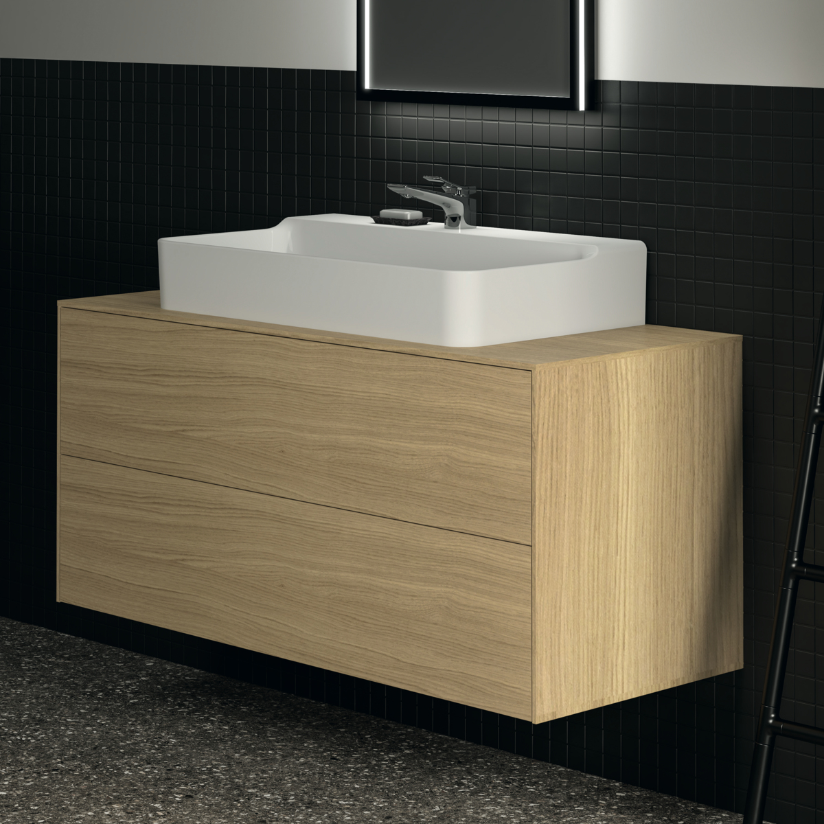 CONCA Тумба 120 см для раковины, центральный вырез в столешнице. Комбинированная система для удобного использования (открытие "Push to open" + закрытие "Soft close"). Внутренняя отделка ящиков цвета антрацит. 2 ящика. Для монтажа с раковинами Conca 40/50/60/80/100 см (с шлифованной нижней поверхностью) или Conca vessel 45/60 см или Extra 45/50/60/70/80/100 см (с шлифованной нижней поверхностью) или Extra vessel 50/60 см или Ipalyss vessel 40/55/60/65/80 см или Linda-X 50/60/75 см (с шлифованной нижней поверхностью)