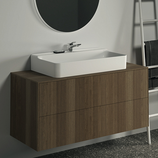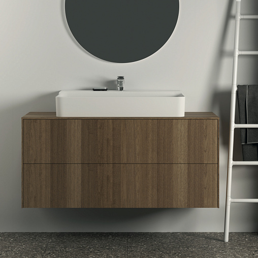 CONCA Тумба 120 см для раковины, центральный вырез в столешнице. Комбинированная система для удобного использования (открытие "Push to open" + закрытие "Soft close"). Внутренняя отделка ящиков цвета антрацит. 2 ящика. Для монтажа с раковинами Conca 40/50/60/80/100 см (с шлифованной нижней поверхностью) или Conca vessel 45/60 см или Extra 45/50/60/70/80/100 см (с шлифованной нижней поверхностью) или Extra vessel 50/60 см или Ipalyss vessel 40/55/60/65/80 см или Linda-X 50/60/75 см (с шлифованной нижней поверхностью)