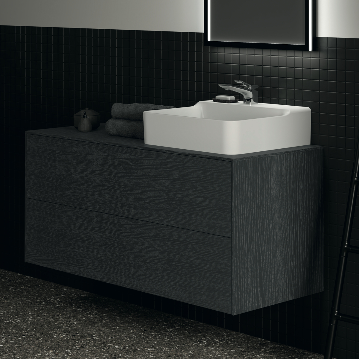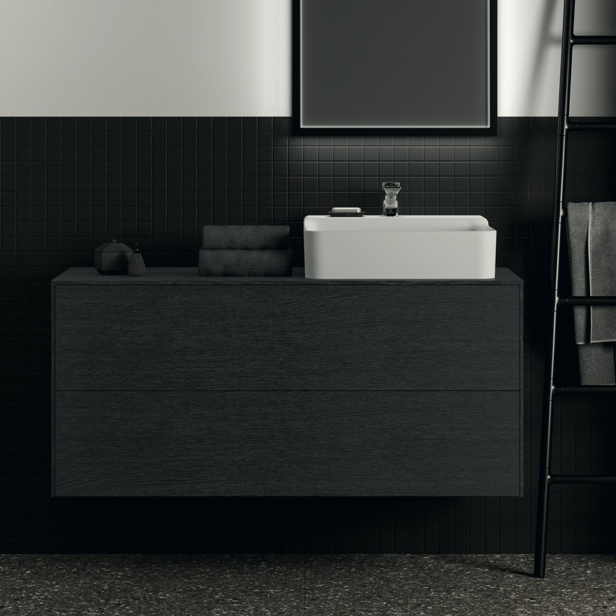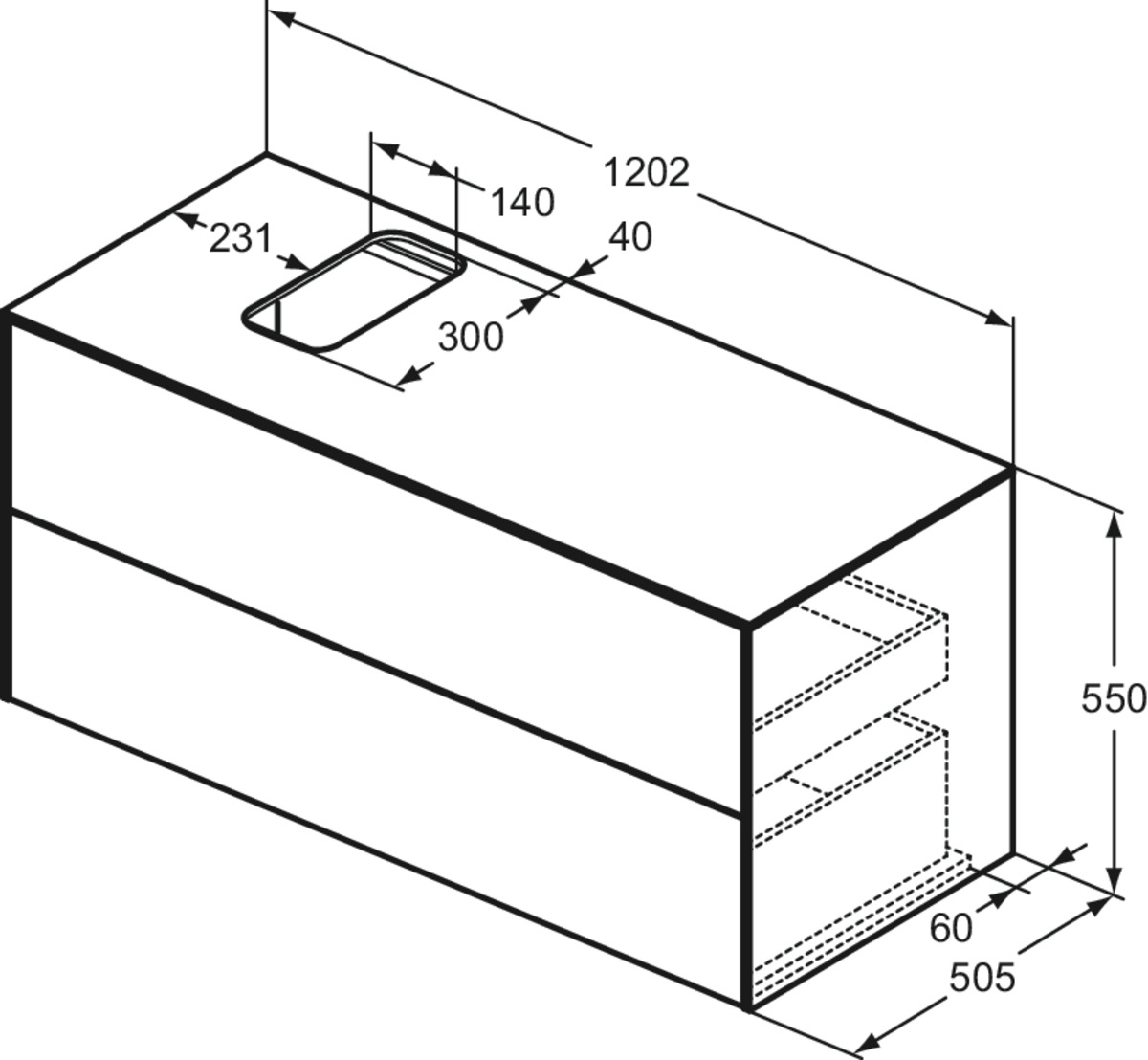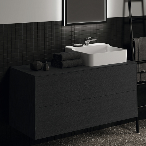 CONCA Тумба 120 см для раковины (вырез в столешнице под заказ). Комбинированная система для удобного использования (открытие "Push to open" + закрытие "Soft close"). Внутренняя отделка ящиков цвета антрацит. 2 ящика.