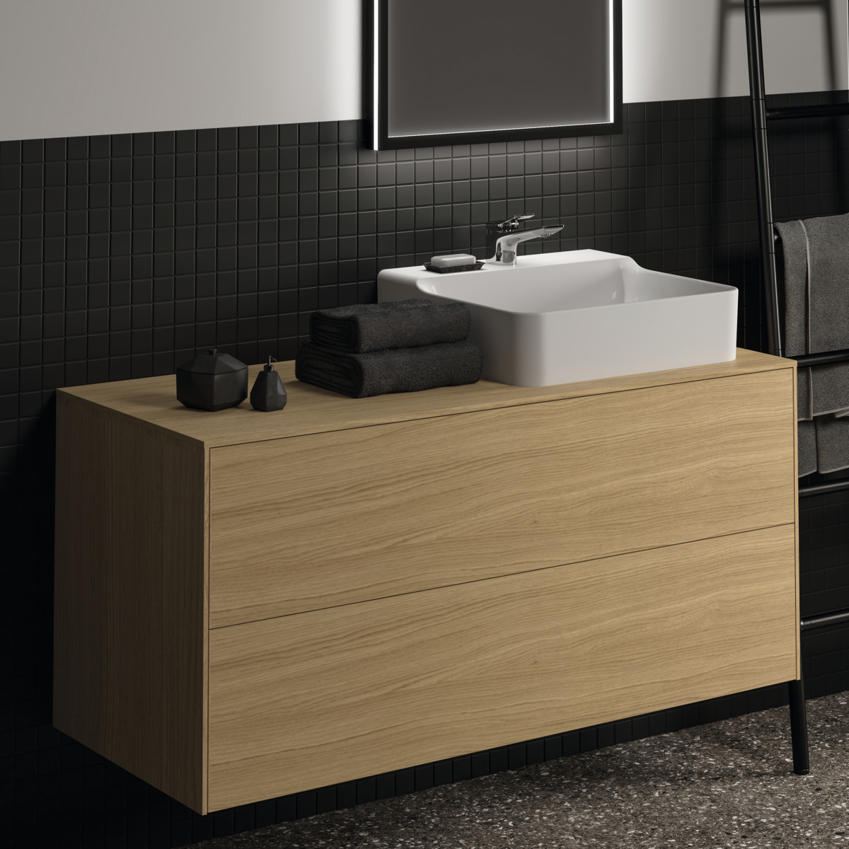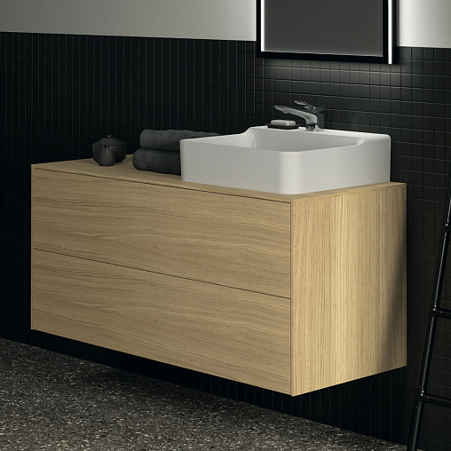 Модуль под раковину Conca 120х50,5х55 см, вырез в столешнице под заказ, светлый дуб, система push-to-open
