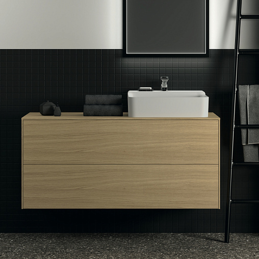CONCA Тумба 120 см для раковины (вырез в столешнице под заказ). Комбинированная система для удобного использования (открытие "Push to open" + закрытие "Soft close"). Внутренняя отделка ящиков цвета антрацит. 2 ящика.