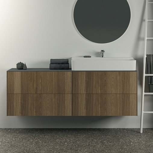 CONCA Тумба 160 см для раковины, без столешницы. Комбинированная система для удобного использования (открытие "Push to open" + закрытие "Soft close"). Внутренняя отделка ящиков цвета антрацит. 4 ящика. Для монтажа со столешницей из литьевого мрамора (без выреза / вырез под заказ) 160 см T4202.