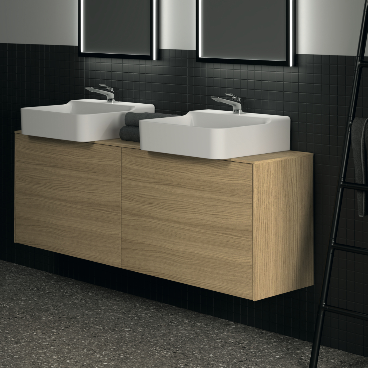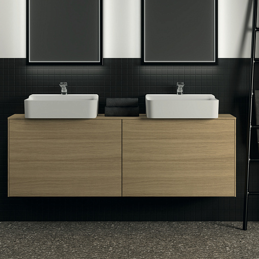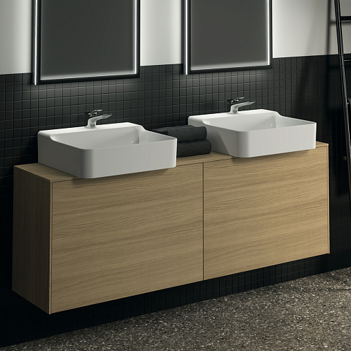 Модуль под раковину Conca 158,7х37,3х55 см, вырез в столешнице под заказ, светлый дуб, система push-to-open