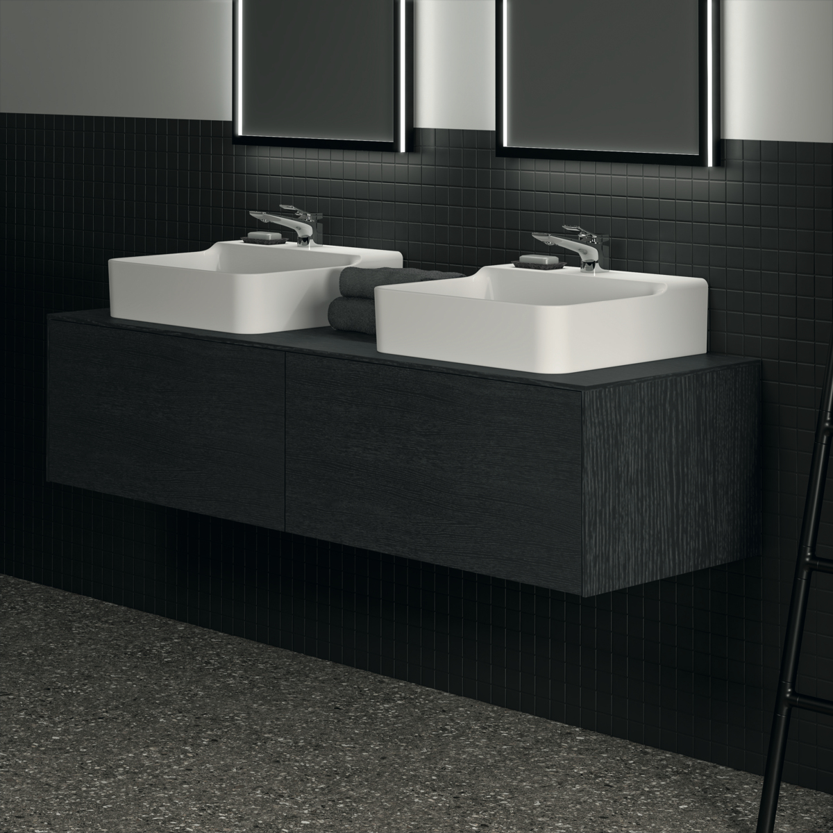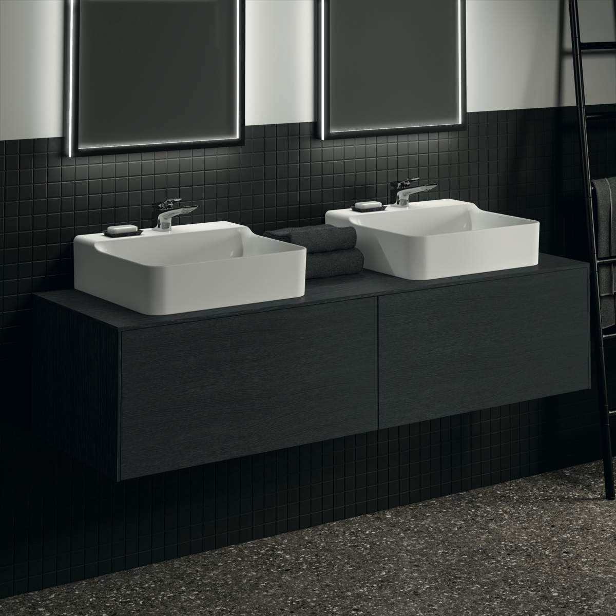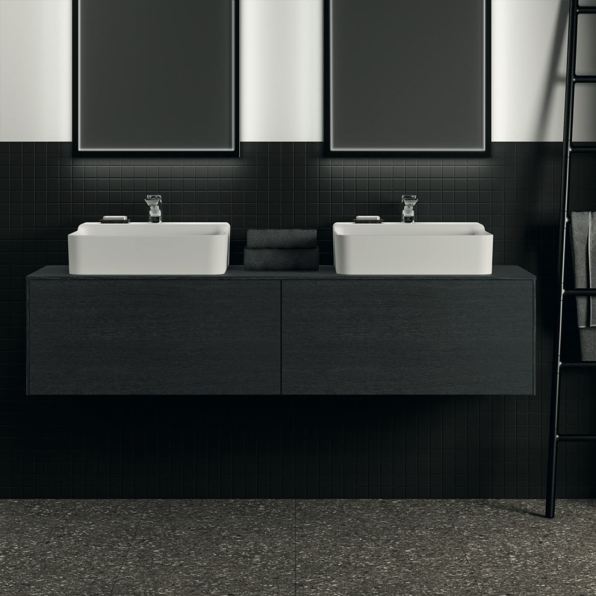 CONCA Тумба 160 см для раковины, со столешницей (вырез под заказ). Комбинированная система для удобного использования (открытие "Push to open" + закрытие "Soft close"). Внутренняя отделка ящиков цвета антрацит. 2 ящика