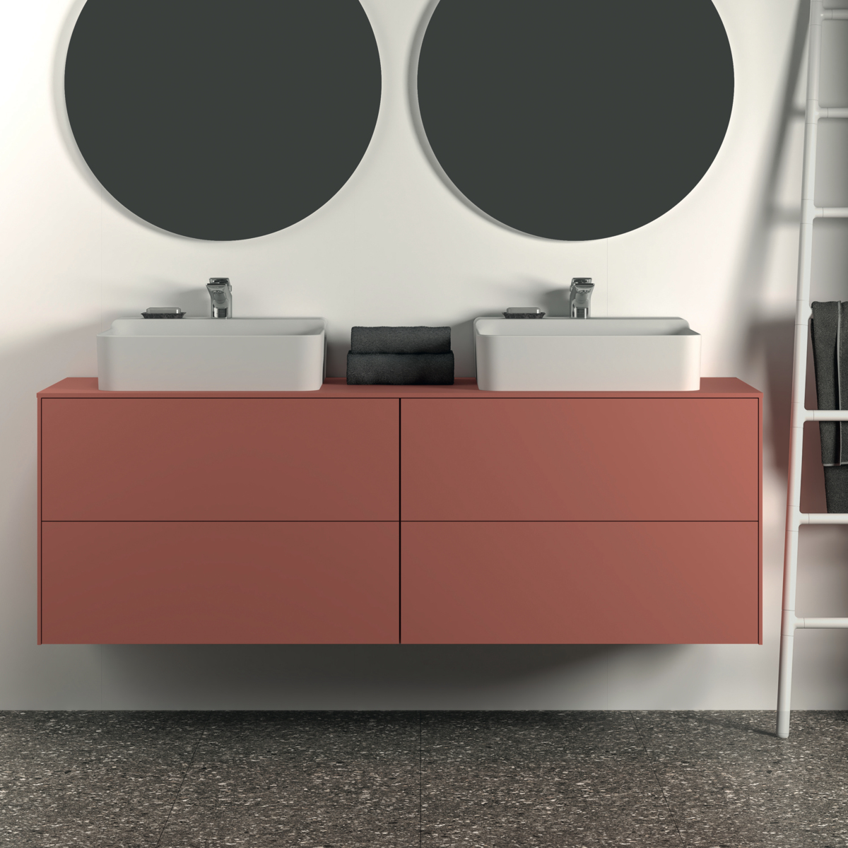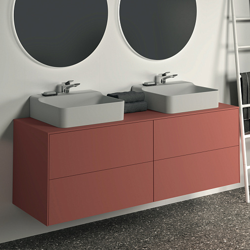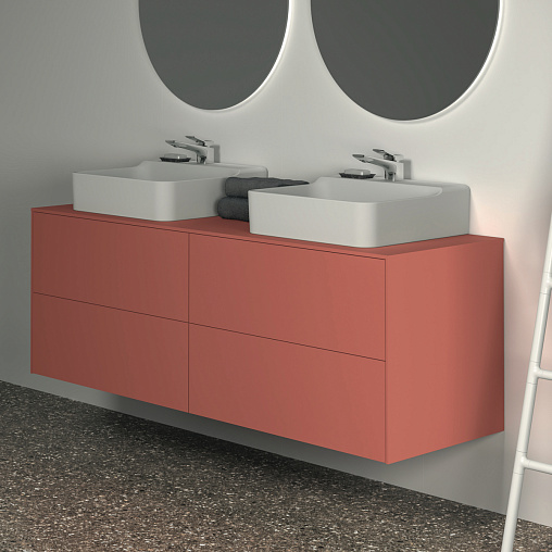 Модуль под раковину Conca 158,7х50,5х55 см, 4 ящика, вырез в столешнице под заказ, матовый закат, система push-to-open