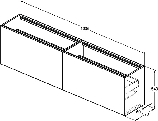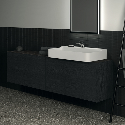 CONCA Тумба 200 см для раковины, узкая проекция 37 см, без столешницы. Комбинированная система для удобного использования (открытие "Push to open" + закрытие "Soft close"). Внутренняя отделка ящиков цвета антрацит. 2 внешних и 2 внутренних ящика. Для монтажа со столешницей из литьевого мрамора (без выреза / вырез под заказ) 200 см T4349.