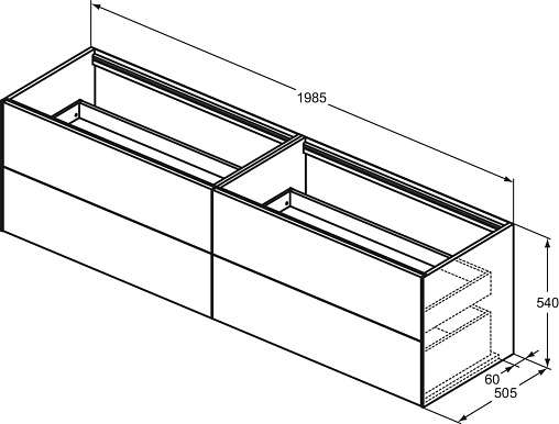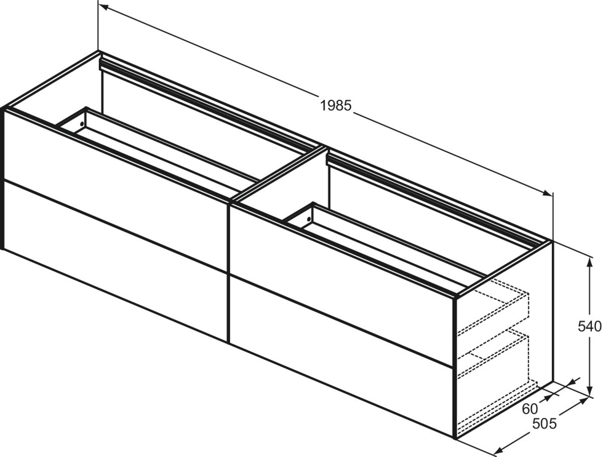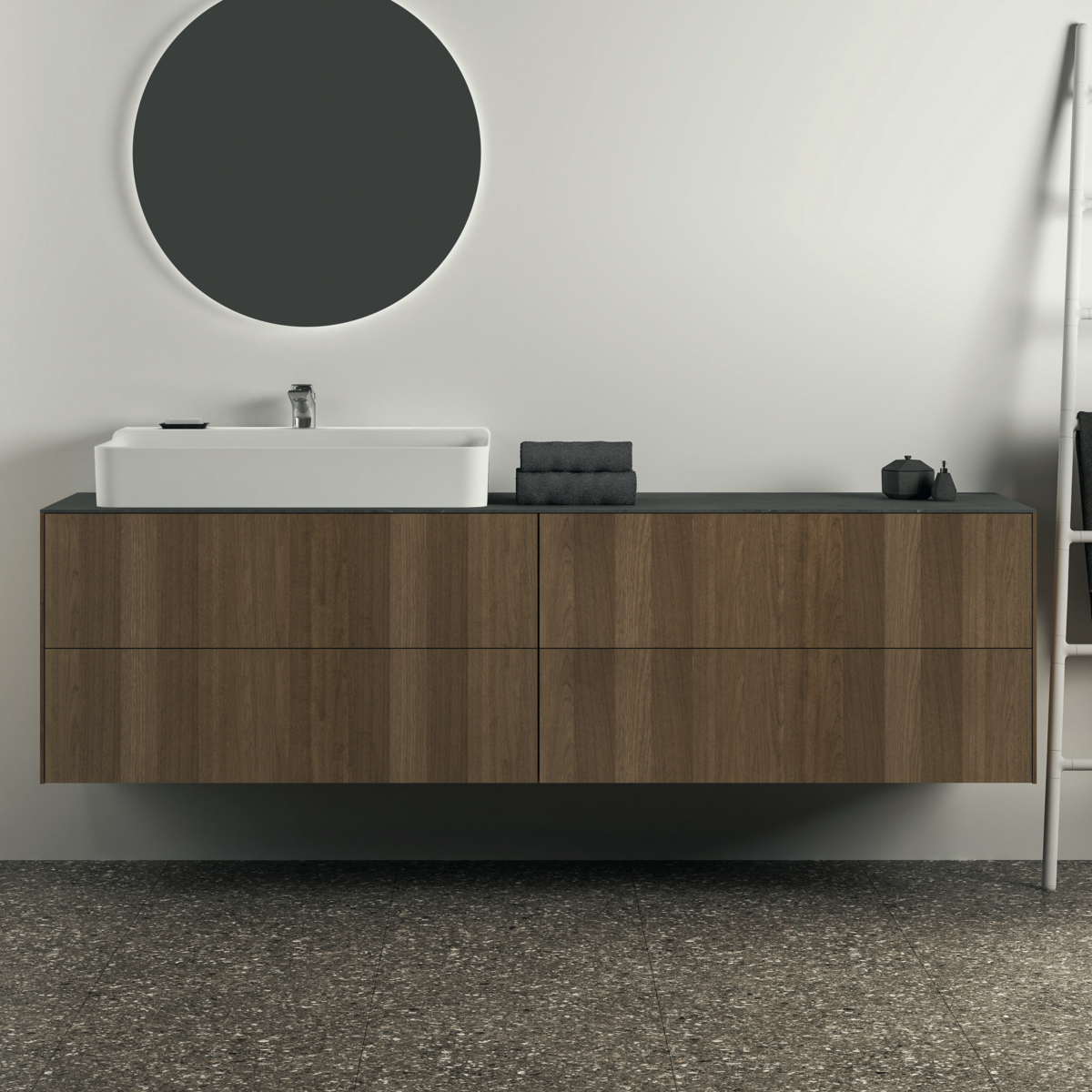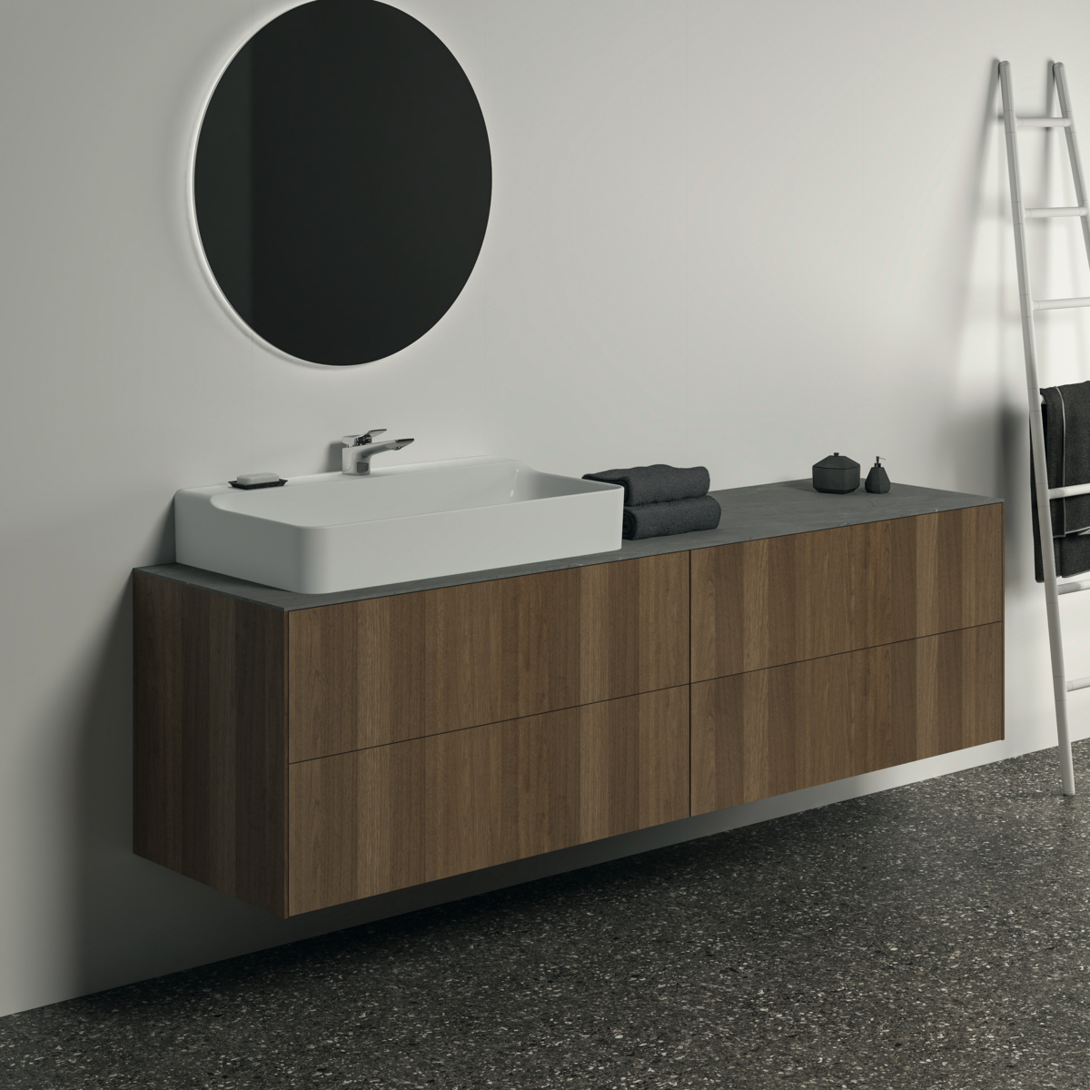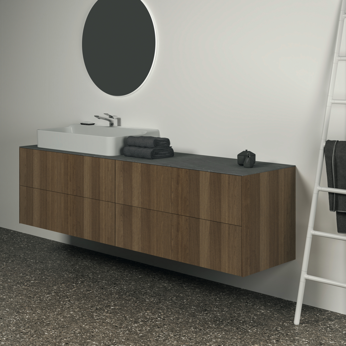 CONCA Тумба 200 см для раковины, без столешницы. Комбинированная система для удобного использования (открытие "Push to open" + закрытие "Soft close"). Внутренняя отделка ящиков цвета антрацит. 4 ящика. Для монтажа со столешницей из литьевого мрамора (без выреза / вырез под заказ) 200 см T4204.