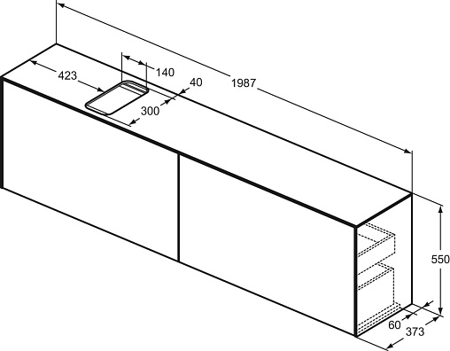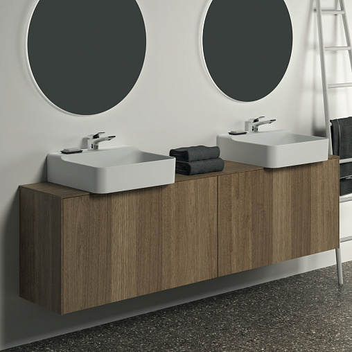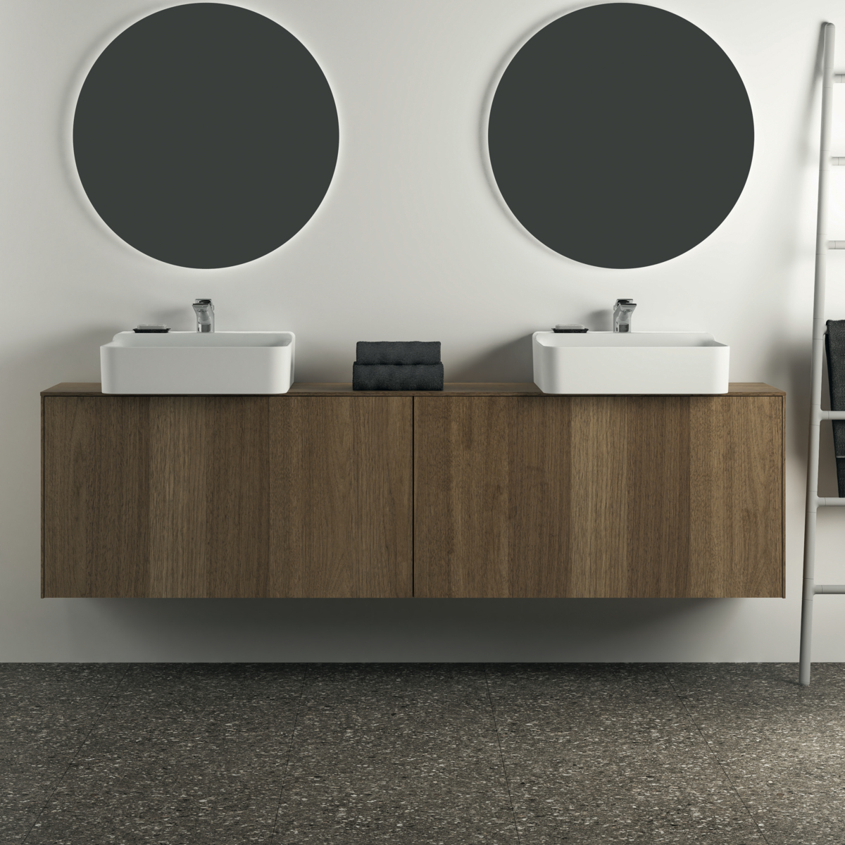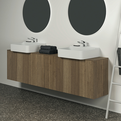 Модуль под раковину Conca 198,7х37,3х55 см, вырез в столешнице под заказ, темный орех, система push-to-open
