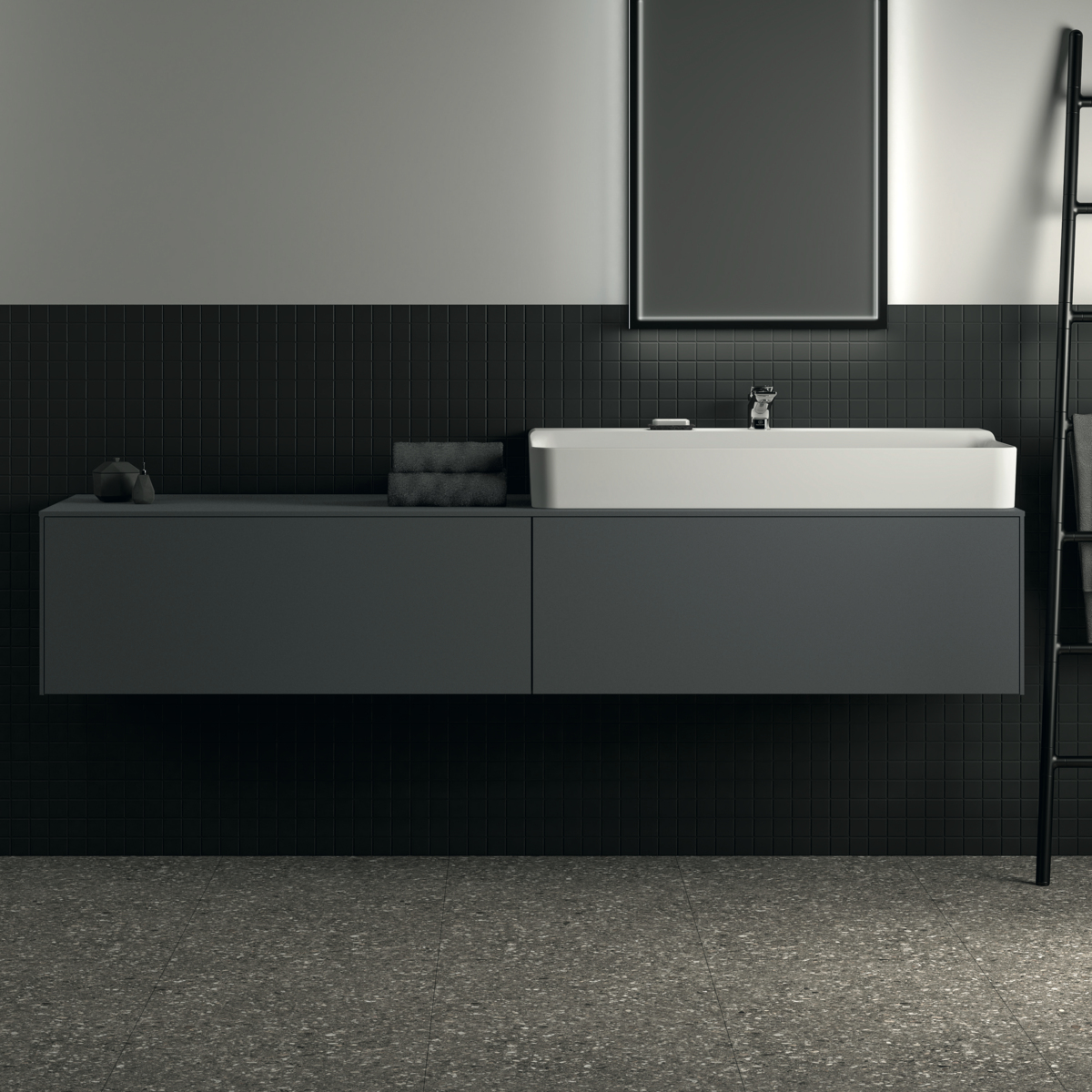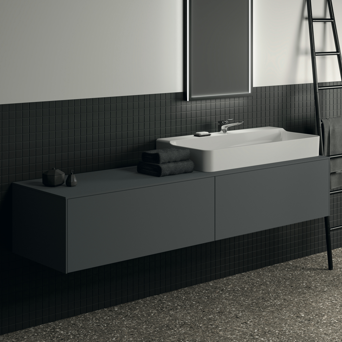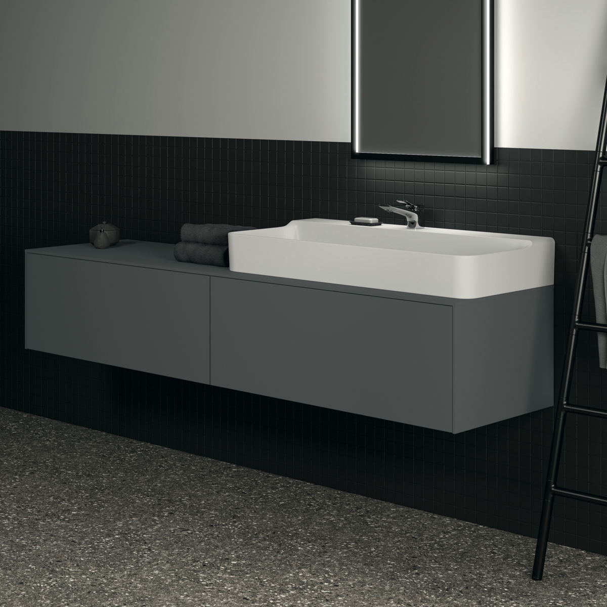 Модуль под раковину Conca 198,7х50,5х36 см, вырез в столешнице под заказ, антрацит матовый, система push-to-open