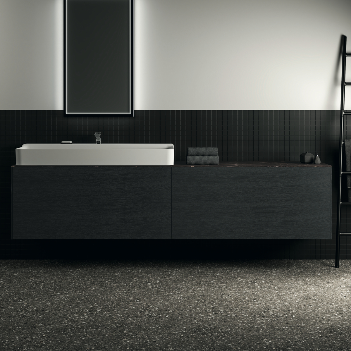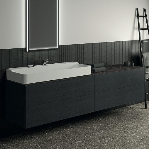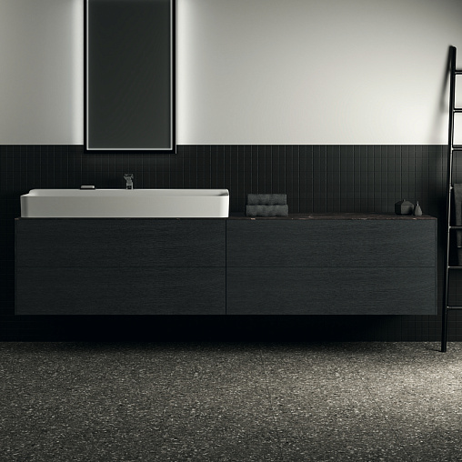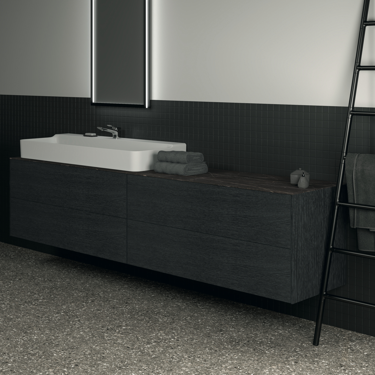 CONCA Тумба 240 см для раковины, без столешницы. Комбинированная система для удобного использования (открытие "Push to open" + закрытие "Soft close"). Внутренняя отделка ящиков цвета антрацит. 4 ящика. Для монтажа со столешницей из литьевого мрамора (без выреза / вырез под заказ) 240 см T4343.