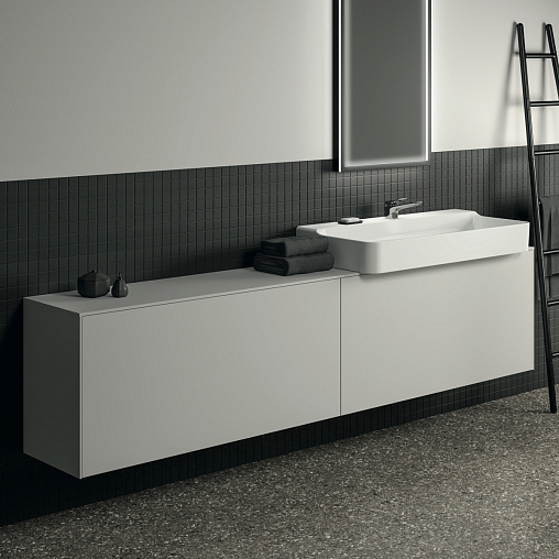 Модуль под раковину Conca 238,7х37,3х55 см, вырез в столешнице под заказ, белый матовый, система push-to-open