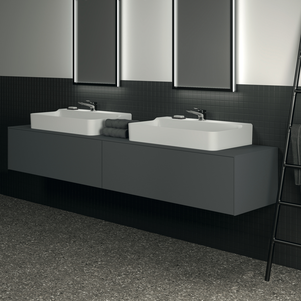 Модуль под раковину Conca 238,7х50,5х37 см, вырез в столешнице под заказ, антрацит матовый, система push-to-open