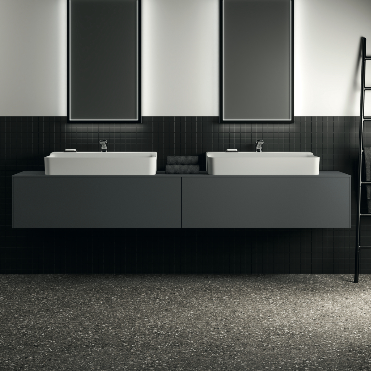 CONCA Тумба 240 см для раковины (вырез в столешнице под заказ). Комбинированная система для удобного использования (открытие "Push to open" + закрытие "Soft close"). Внутренняя отделка ящиков цвета антрацит. 2 ящика.