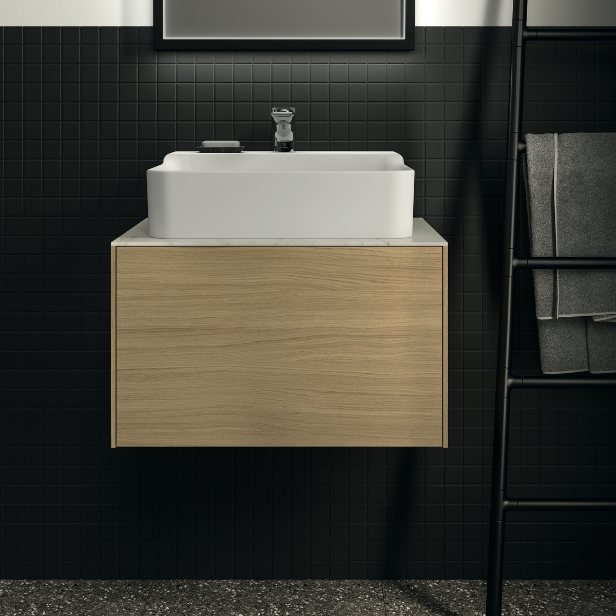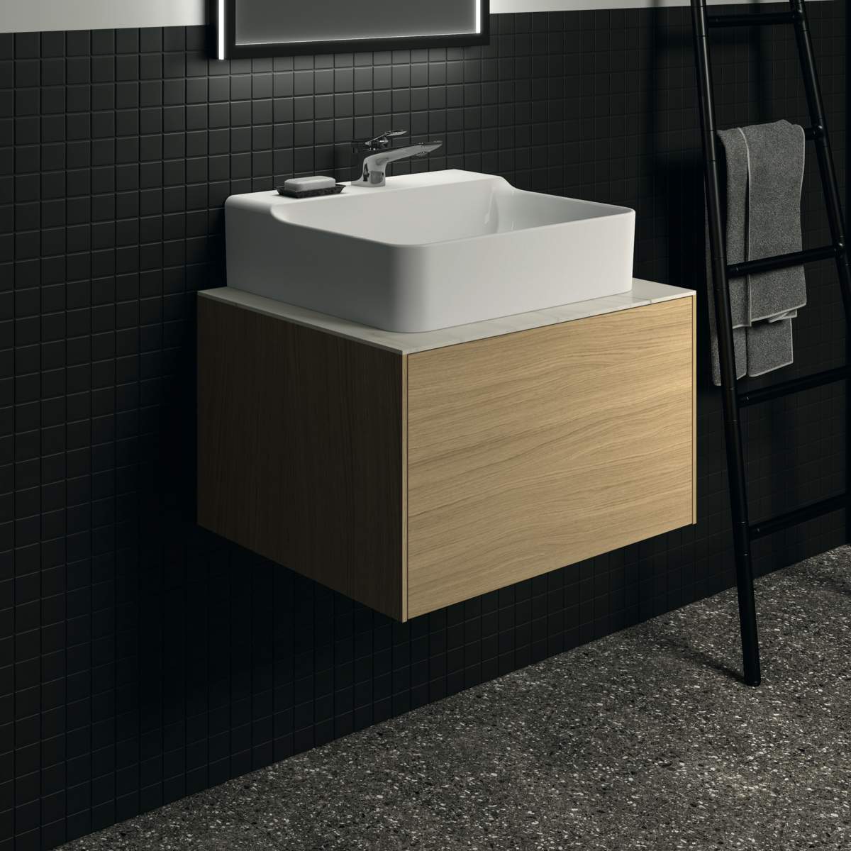 CONCA Тумба 60 см для раковины, без столешницы. Комбинированная система для удобного использования (открытие "Push to open" + закрытие "Soft close"). Внутренняя отделка ящиков цвета антрацит. 1 ящик. Для монтажа со столешницей из литьевого мрамора (без выреза / вырез под заказ) 60 см T3969.