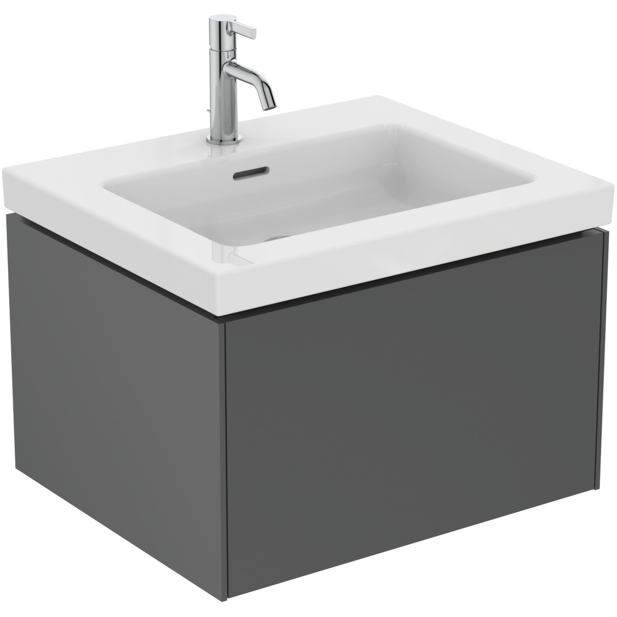 CONCA Тумба 60 см для раковины, без столешницы. Комбинированная система для удобного использования (открытие "Push to open" + закрытие "Soft close"). Внутренняя отделка ящиков цвета антрацит. 1 внешний ящик. Для монтажа с раковиной Extra Vanity 61 см или Calla Vanity 66,5 см или I.Life B Vanity 61 см