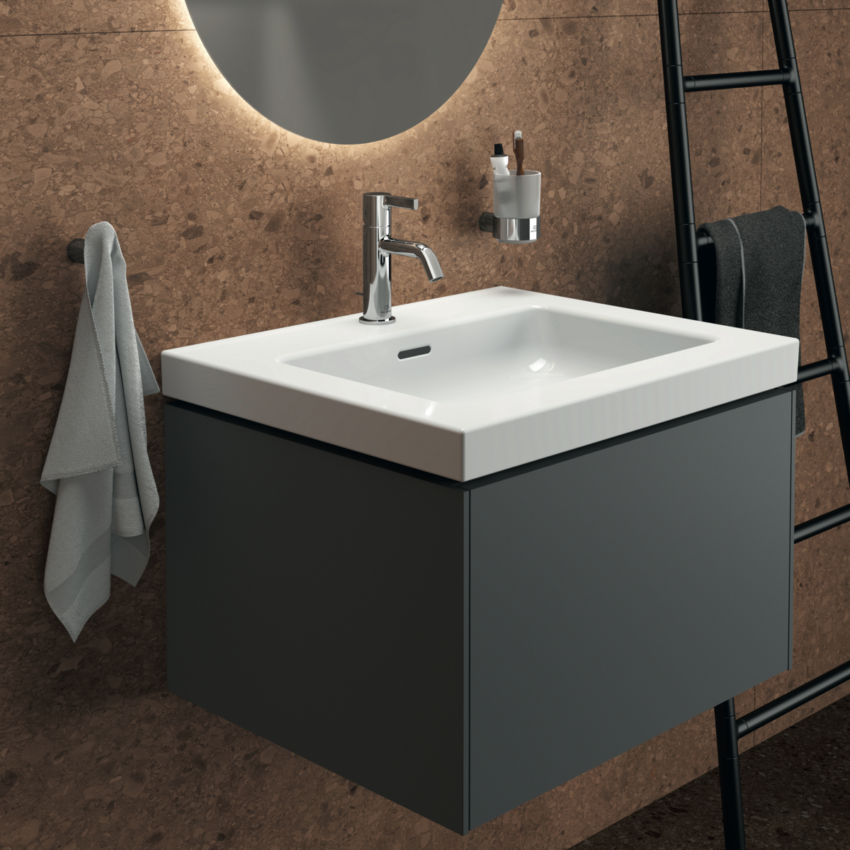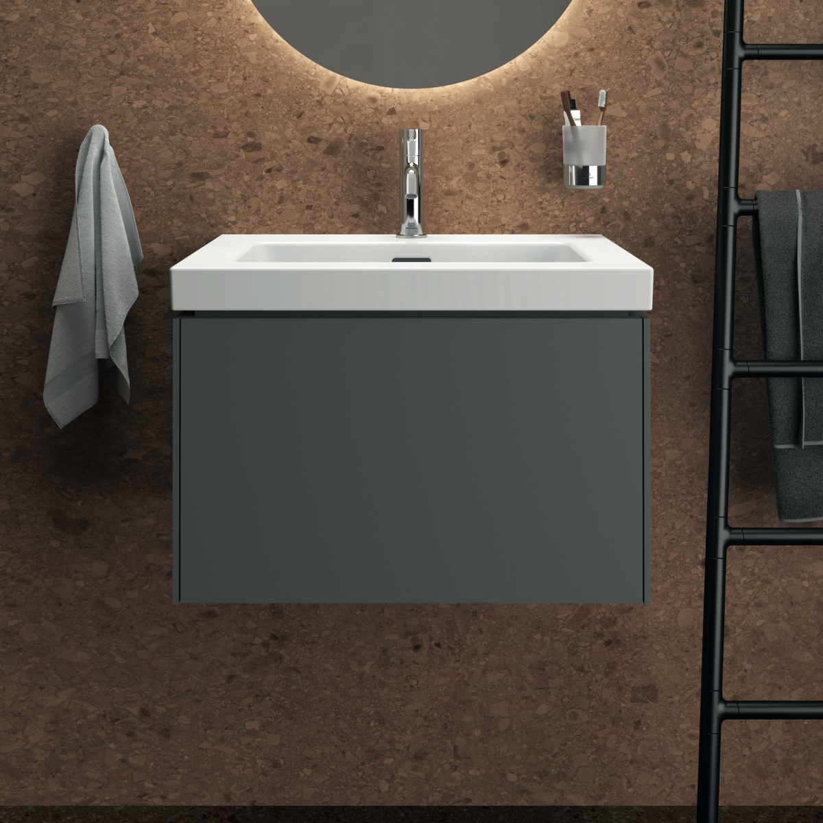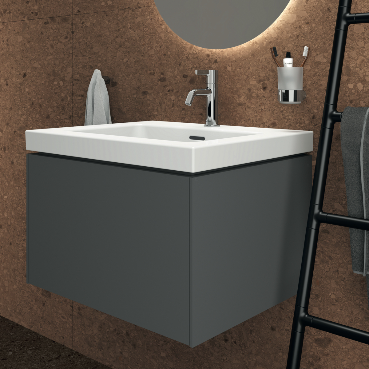 Модуль под раковину Conca 60х50,5х37 см, антрацит матовый, система push-to-open