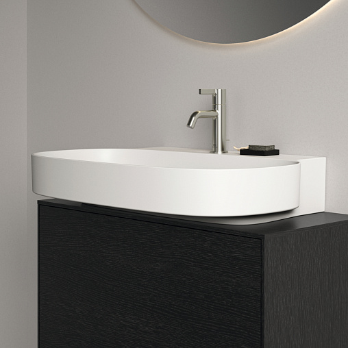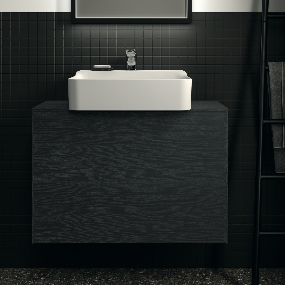 CONCA Тумба 80 см для раковины, узкая проекция 37 см, центральный вырез в столешнице. Комбинированная система для удобного использования (открытие "Push to open" + закрытие "Soft close"). Внутренняя отделка ящиков цвета антрацит. 1 внешний и 1 внутренний ящик. Рекомендуется сифон Space Saving EE23033967 (заказывается дополнительно). Для монтажа с раковинами Conca 40/50/60 см (с шлифованной нижней поверхностью) или Conca vessel 45/60 см или Extra 45/50/60/70 см (с шлифованной нижней поверхностью) или Extra vessel 50/60 см или Ipalyss vessel 40/55/60/65/80 см или Linda-X 50/60/75 см (с шлифованной нижней поверхностью) или Linda-X vessel 45/55 см