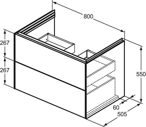 CONCA Тумба 80 см для раковины, без столешницы. Комбинированная система для удобного использования (открытие "Push to open" + закрытие "Soft close"). Внутренняя отделка ящиков цвета антрацит. 2 внешних ящика. Для монтажа с раковиной Extra Vanity 81 см или Calla Vanity 86,5 см или I.Life B Vanity 81 см