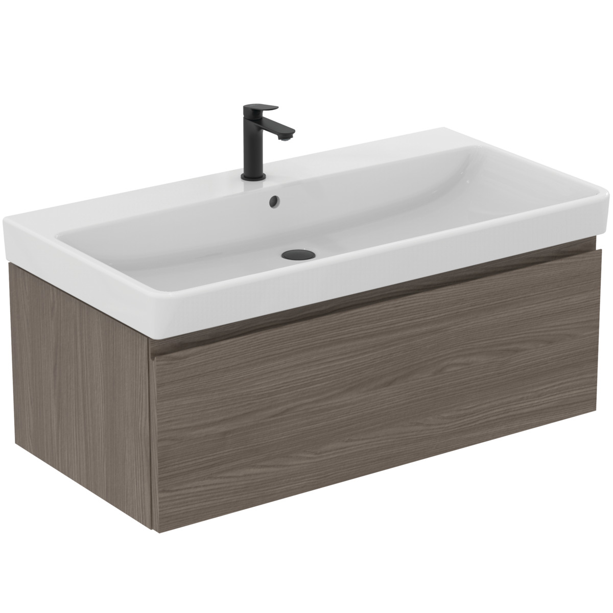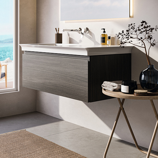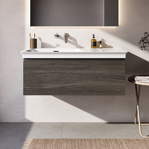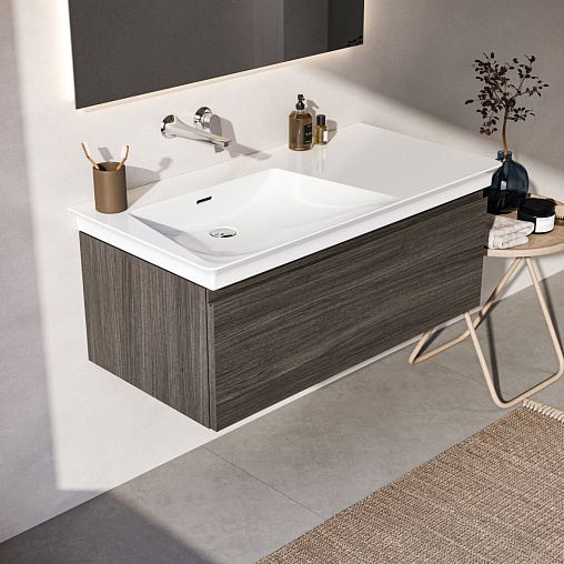 FINESSE Тумба для раковины 100х50 см для подвесного монтажа, 1 ящик, система плавного закрытия. Конструкция без ручек - паз над ящиком для легкого открывания. C крепежом. Рекомендуется сифон Space Saving EE23033967 (заказывается дополнительно). Для монтажа с раковинами EXTRA Vanity 101 см T4366, T4369, T4368 или SOLOS Vanity 101,5 см T5370, T5369, T5561 или La Dolce Vita Vanity 106 см E2631, E2702, E2677 или i.Life B Vanity 101 см T4603