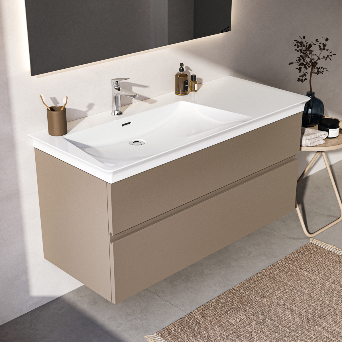 Модуль под раковину Finesse 120х50,5х55 см, левосторонний, серо-бежевый матовый
