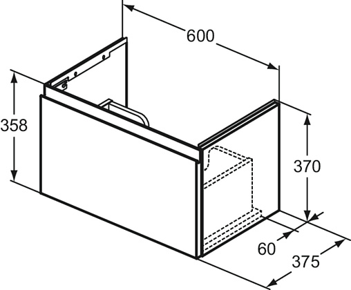 FINESSE Тумба для раковины 60х38 см для подвесного монтажа, 1 ящик, система плавного закрытия. Конструкция без ручек - паз над ящиком для легкого открывания. C крепежом. Рекомендуется сифон Space Saving EE23033967 (заказывается дополнительно). Для монтажа с раковиной i.Life S Vanity 61 см T4590