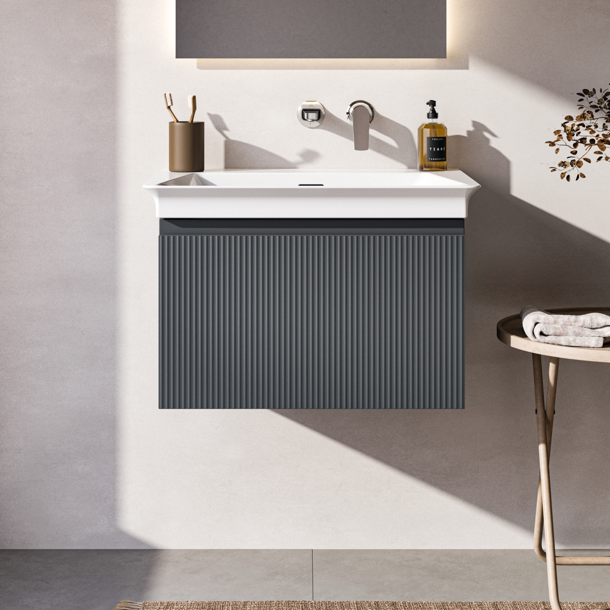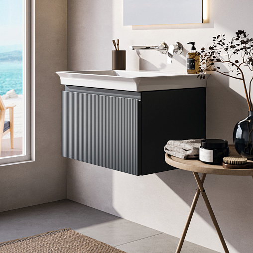 FINESSE Тумба для раковины 60х44 см для подвесного монтажа, 1 ящик, система плавного закрытия. Конструкция без ручек - паз над ящиком для легкого открывания. C крепежом. Рекомендуется сифон Space Saving EE23033967 (заказывается дополнительно). Для монтажа с раковинами La Dolce Vita Symmetrical Vanity 66 см E2644, E2700, E2675 или Extra 60 см T3889, T3891, T3890 или Strada II Vanity 64 см T2991, T3633 или Connect Air Vanity 64 см E0289 или Tesi Vanity 62,5 см T3510 или I.Life A Vanity 64 см T4619 или Eurovit Vanity 61 см E0668