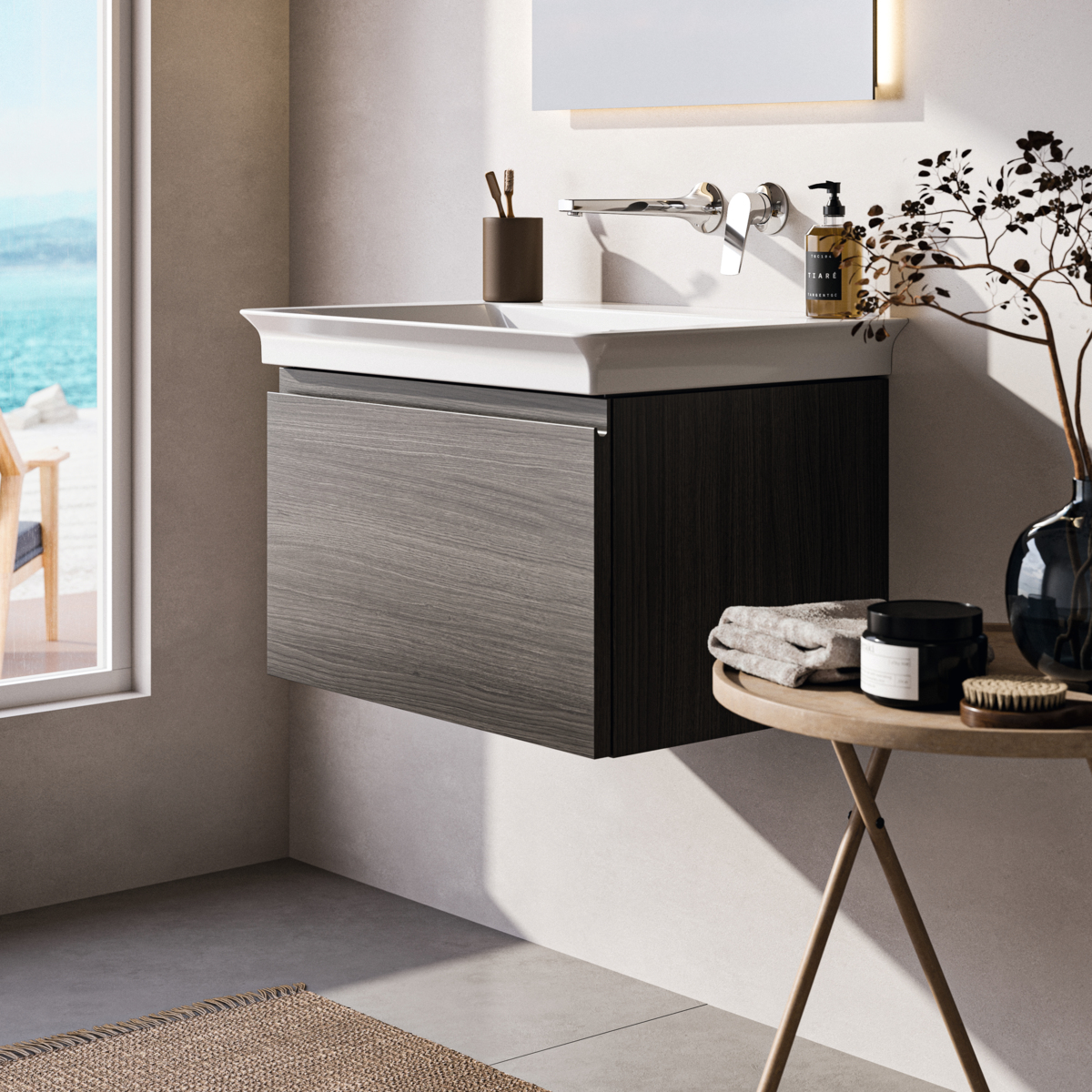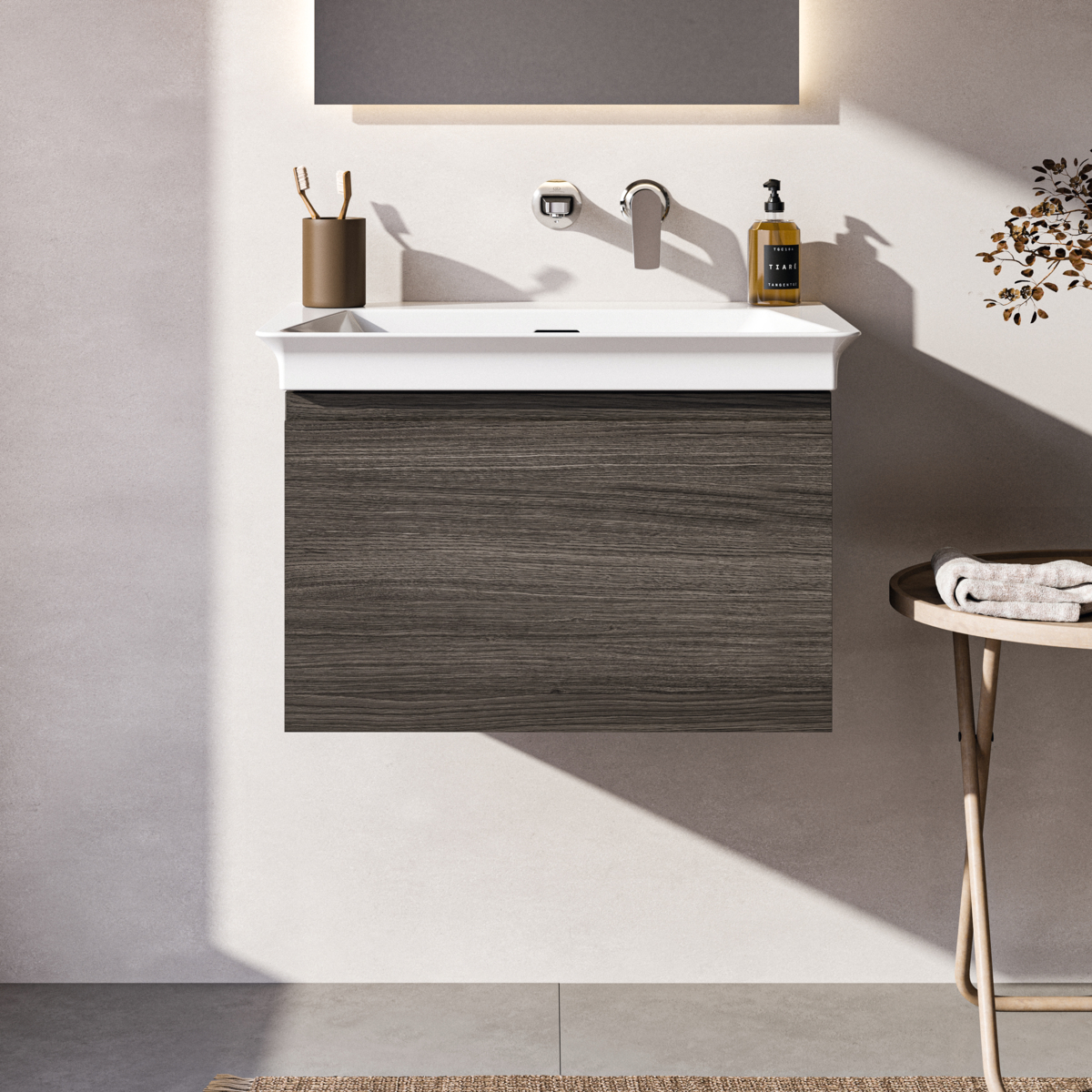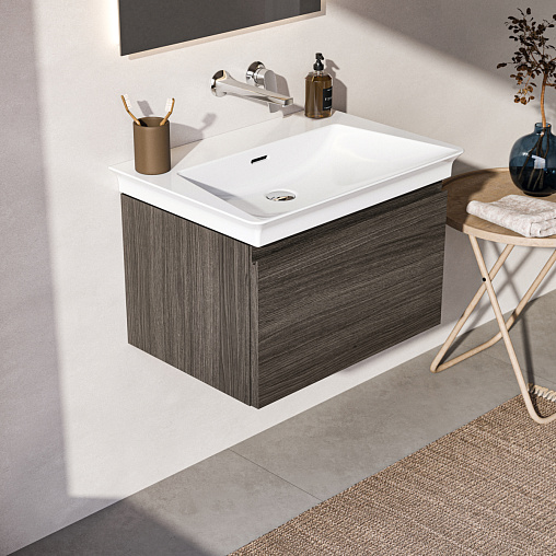 FINESSE Тумба для раковины 60х44 см для подвесного монтажа, 1 ящик, система плавного закрытия. Конструкция без ручек - паз над ящиком для легкого открывания. C крепежом. Рекомендуется сифон Space Saving EE23033967 (заказывается дополнительно). Для монтажа с раковинами La Dolce Vita Symmetrical Vanity 66 см E2644, E2700, E2675 или Extra 60 см T3889, T3891, T3890 или Strada II Vanity 64 см T2991, T3633 или Connect Air Vanity 64 см E0289 или Tesi Vanity 62,5 см T3510 или I.Life A Vanity 64 см T4619 или Eurovit Vanity 61 см E0668