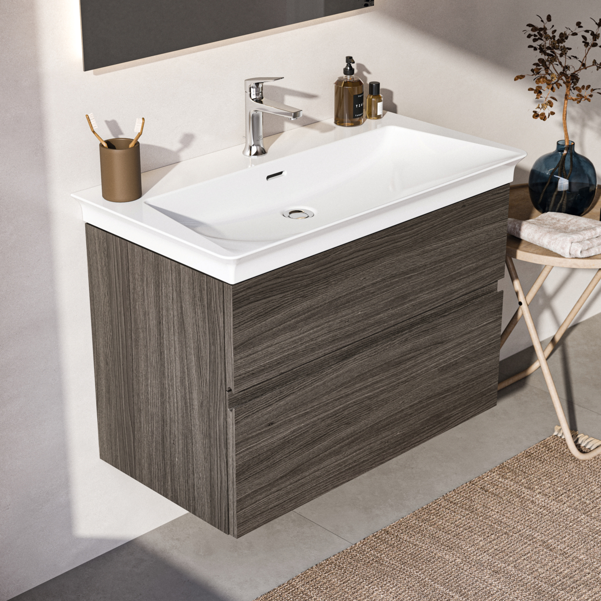FINESSE Тумба для раковины 80х44 см для подвесного монтажа, 2 ящика, система плавного закрытия. Конструкция без ручек - паз под верхним и над нижним выдвижными ящиками для легкого открывания. C крепежом. Рекомендуется сифон Space Saving EE23033967 (заказывается дополнительно). Для монтажа с раковинами La Dolce Vita Symmetrical Vanity 86 см E2629, E2701, E2676 или Extra 80 см T3899, T3901, T3900 или Connect Air Vanity 84 см E0279 или Tesi Vanity 82,5 см T3509 или I.Life A Vanity 84 см T4620 или Connect Air Vanity 84 см E0279 или Eurovit Vanity 81,5 см E0669