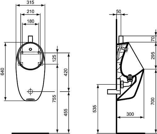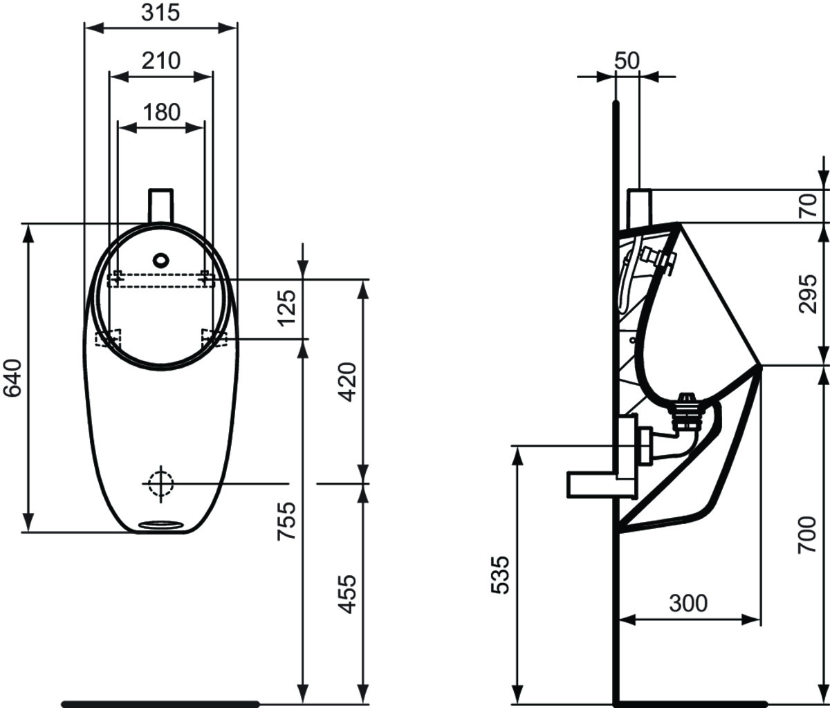 IdealStandard i.life Писсуар, верхняя подводка, с крепежами и фитингами в комплекте.
