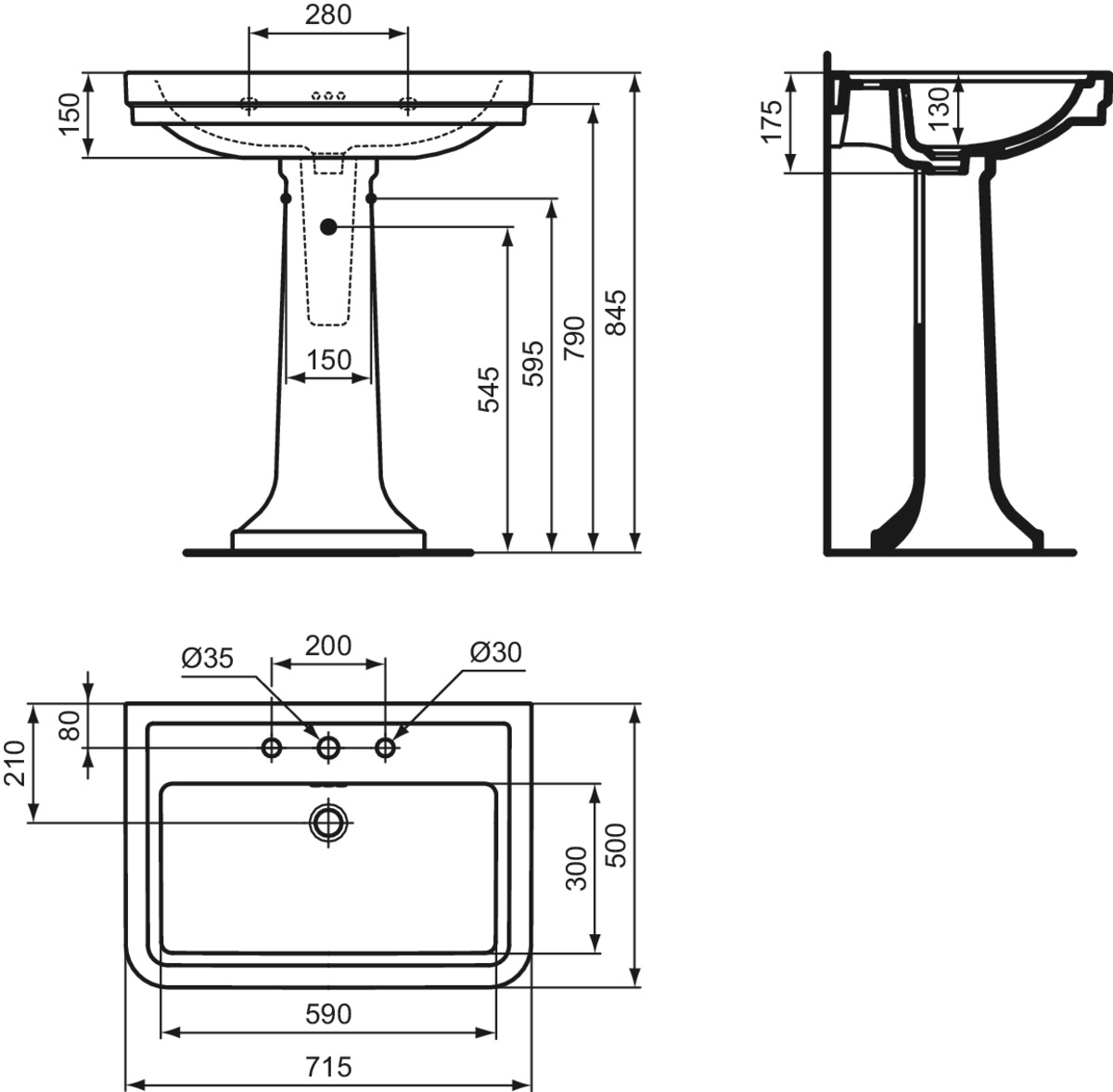 CALLA раковина 71,5 см с отверстием перелива, с 3-мя отверстиями под смеситель