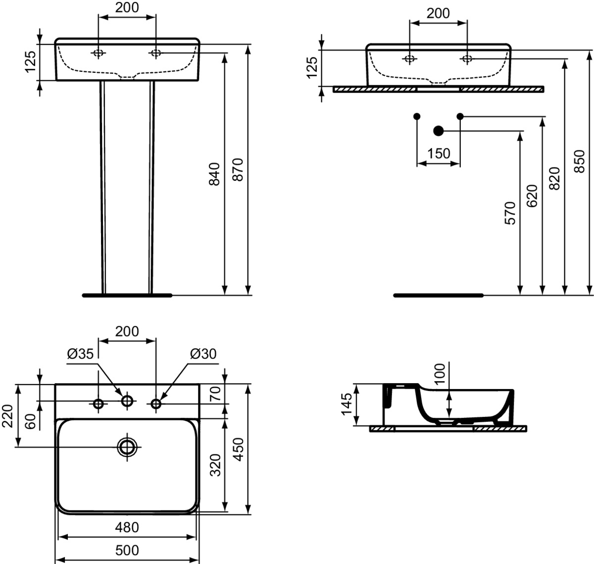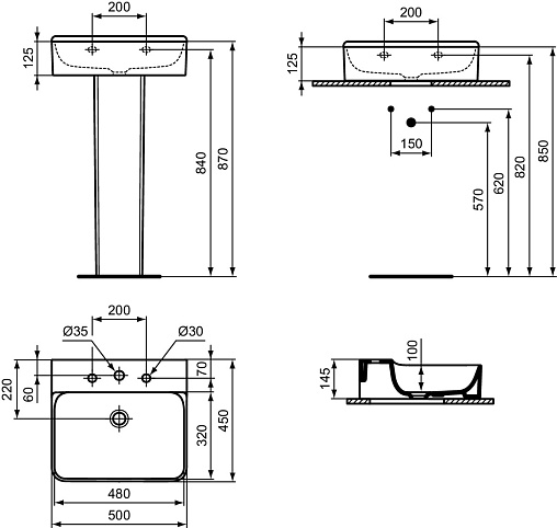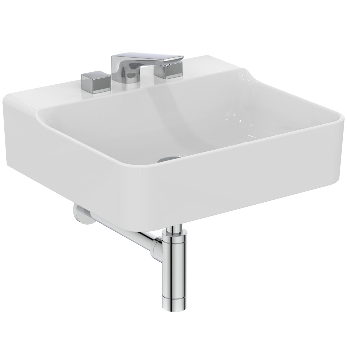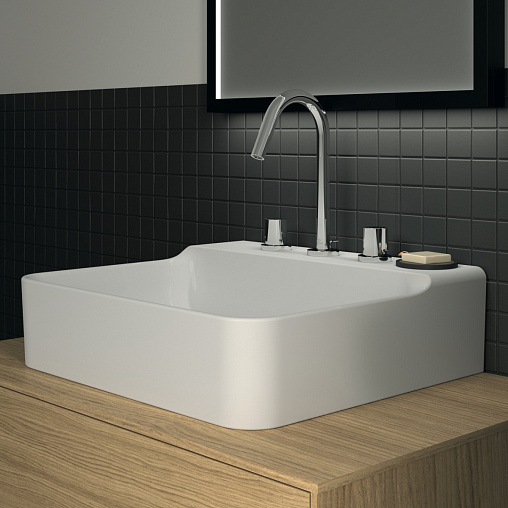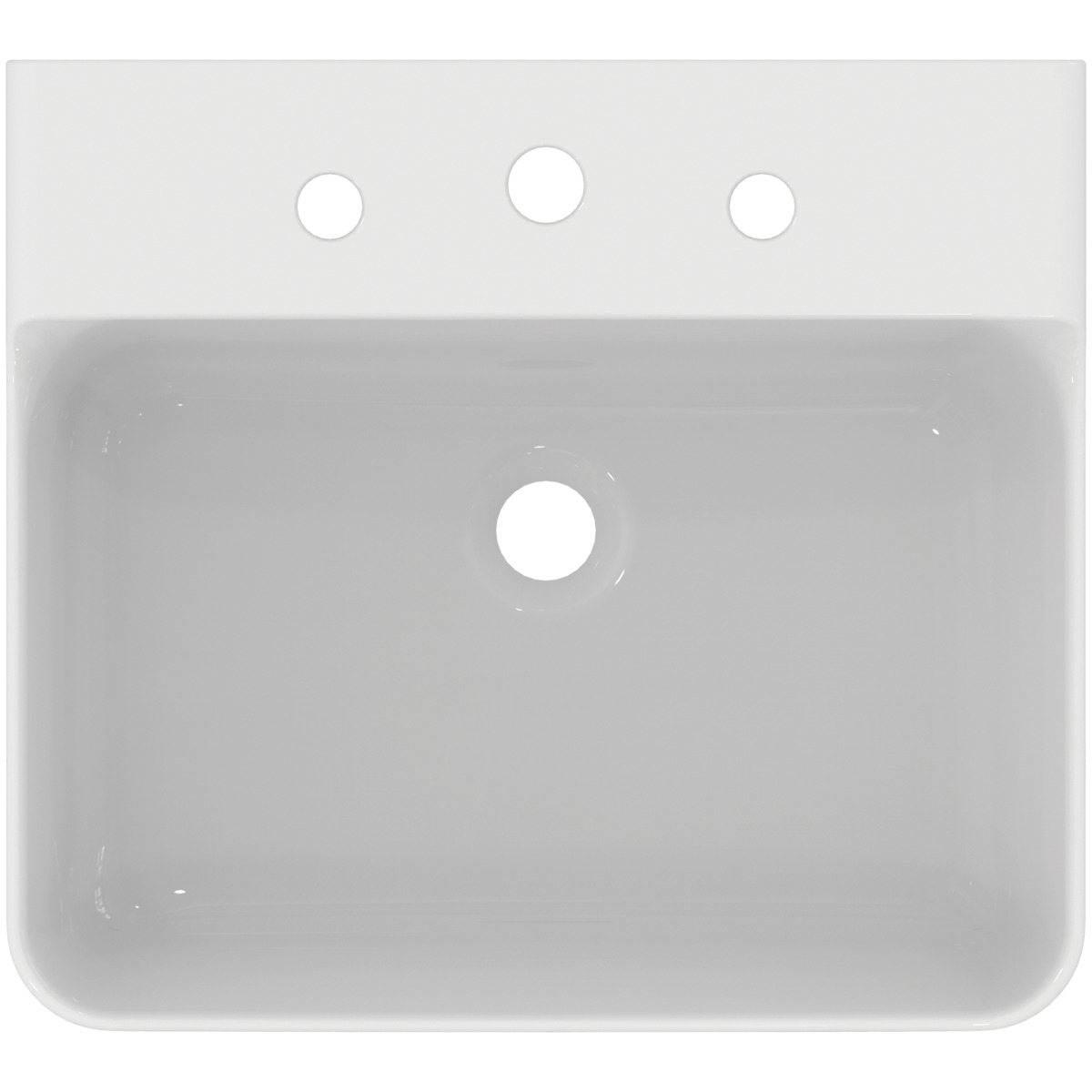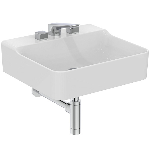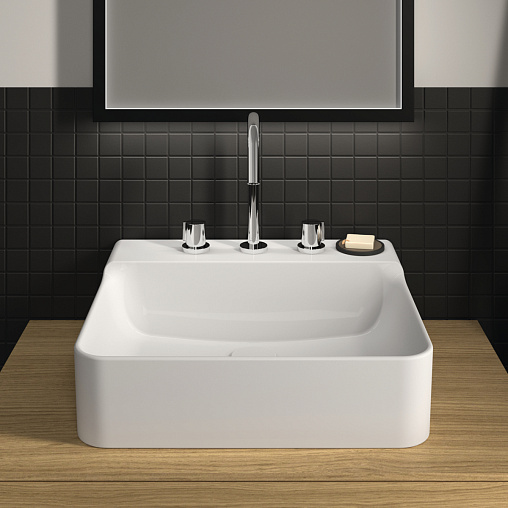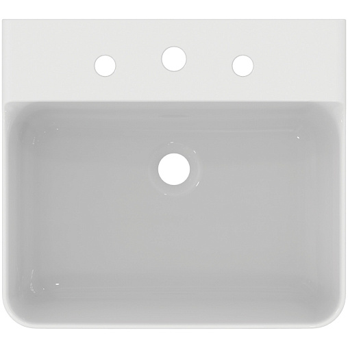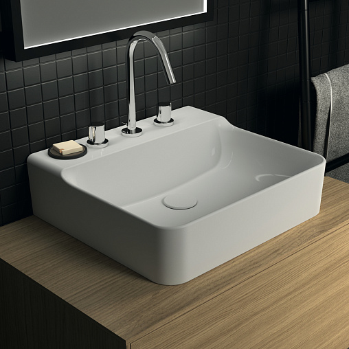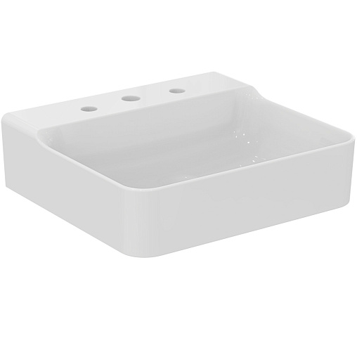 Подвесная раковина Conca 50х45х14,5 см, с 3 отверстиями под смеситель, без отверстия перелива, нижняя поверхность отшлифована, санфарфор, с отв. под смеситель