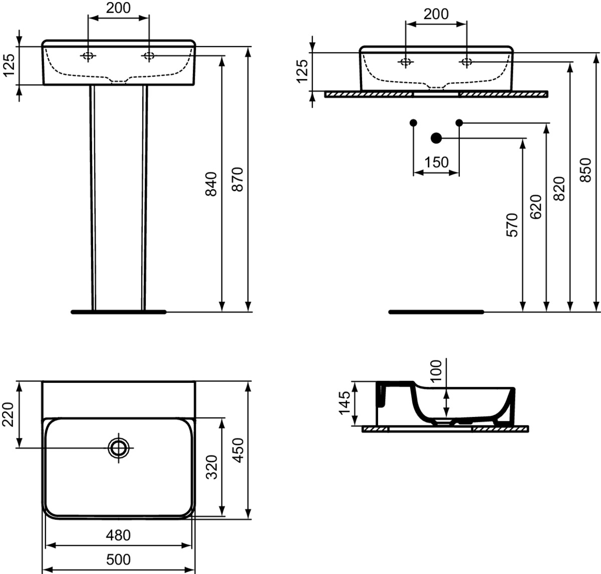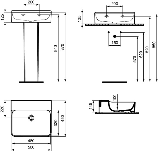 CONCA раковина 50 см без отверстия под смеситель, без отверстия перелива