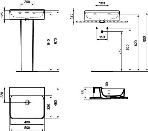CONCA раковина 50 см без отверстия под смеситель, с отверстием перелива, нижняя поверхность отшлифована